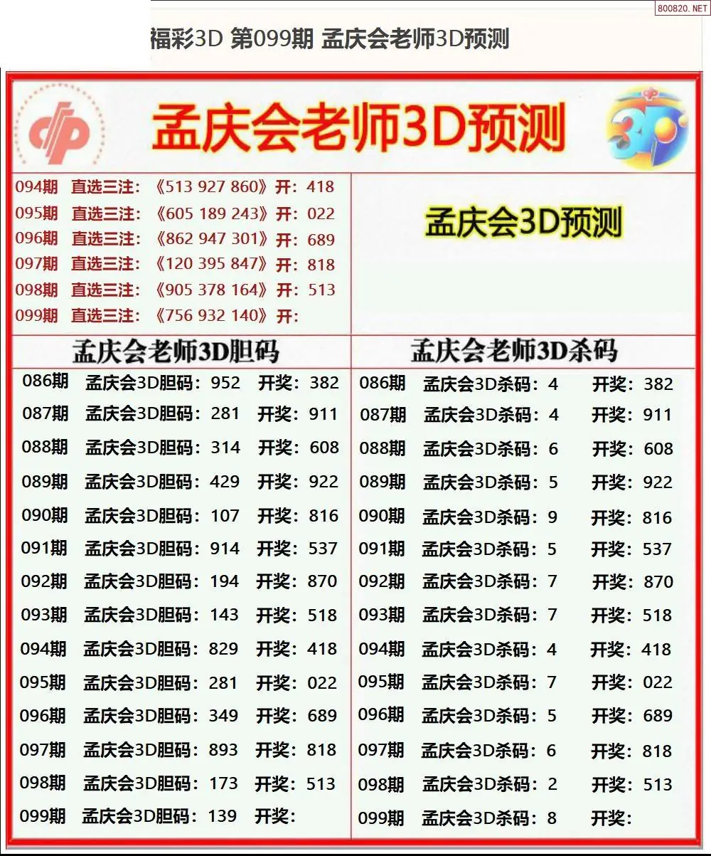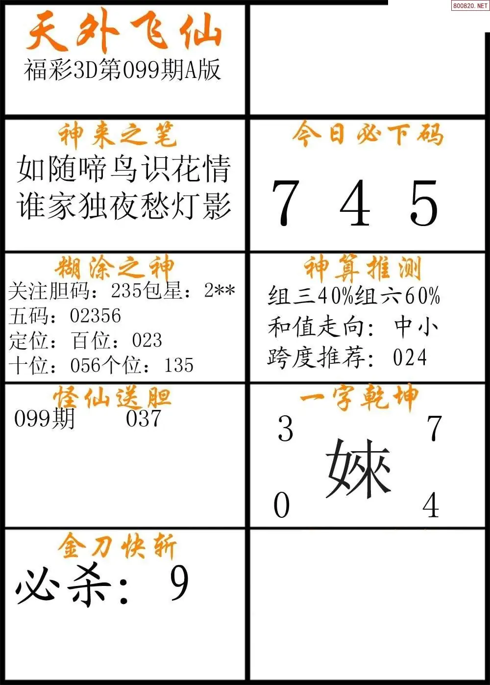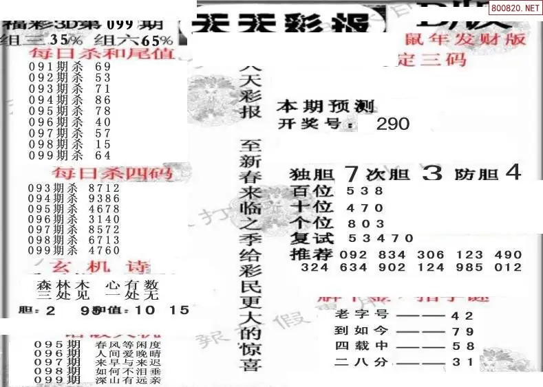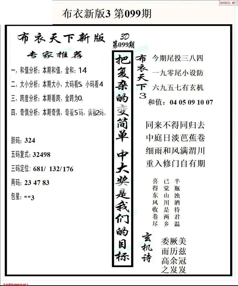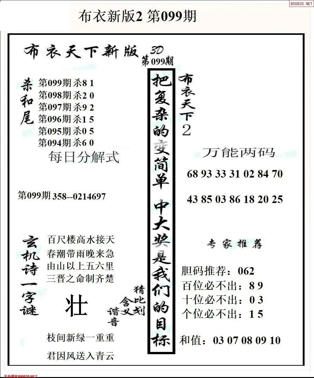 (8)26年099期今日3d各类彩报汇总