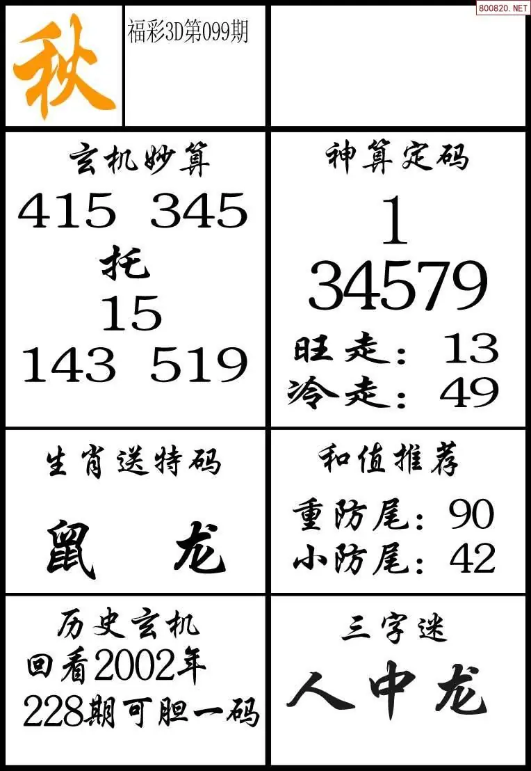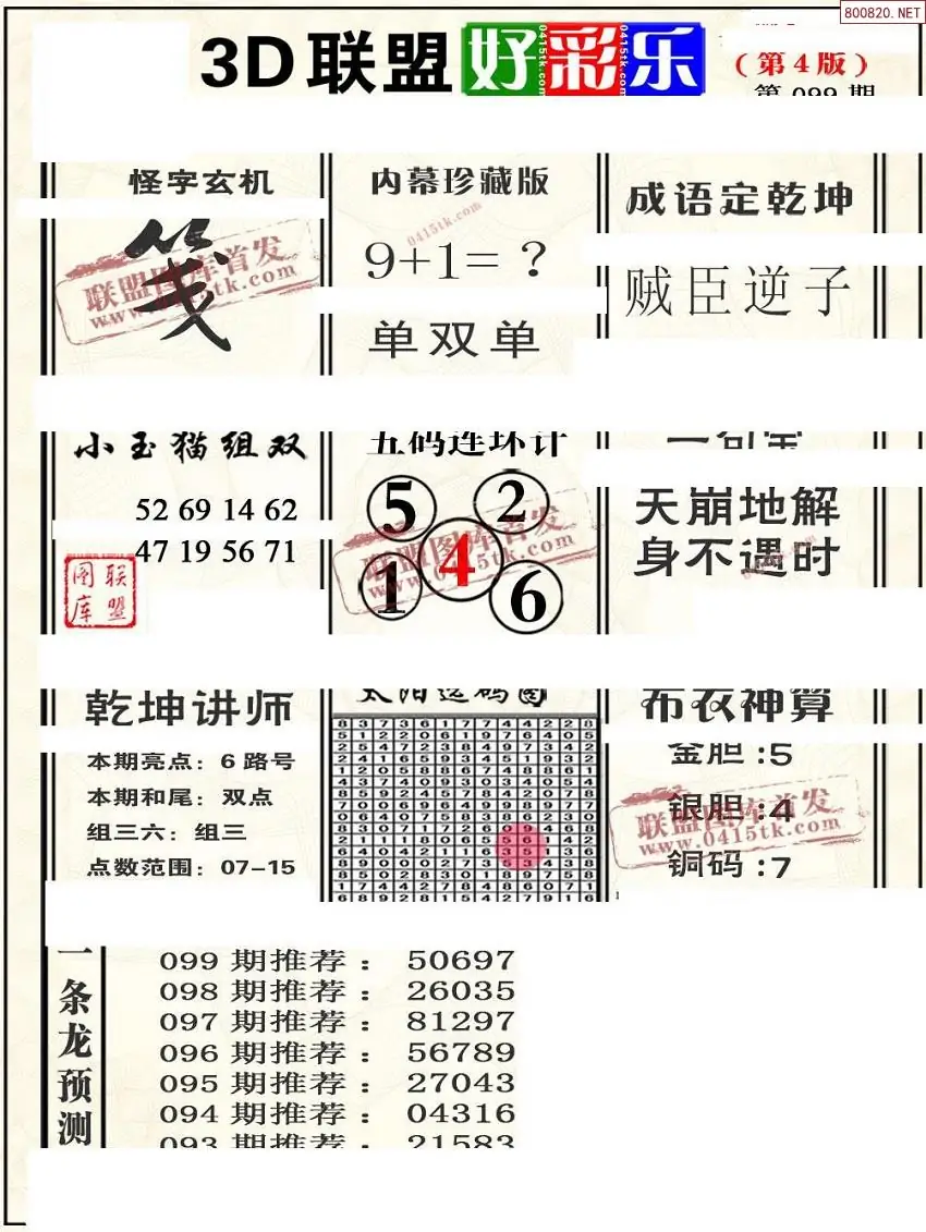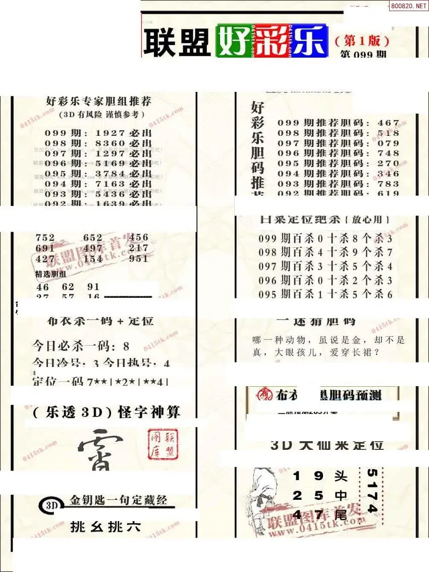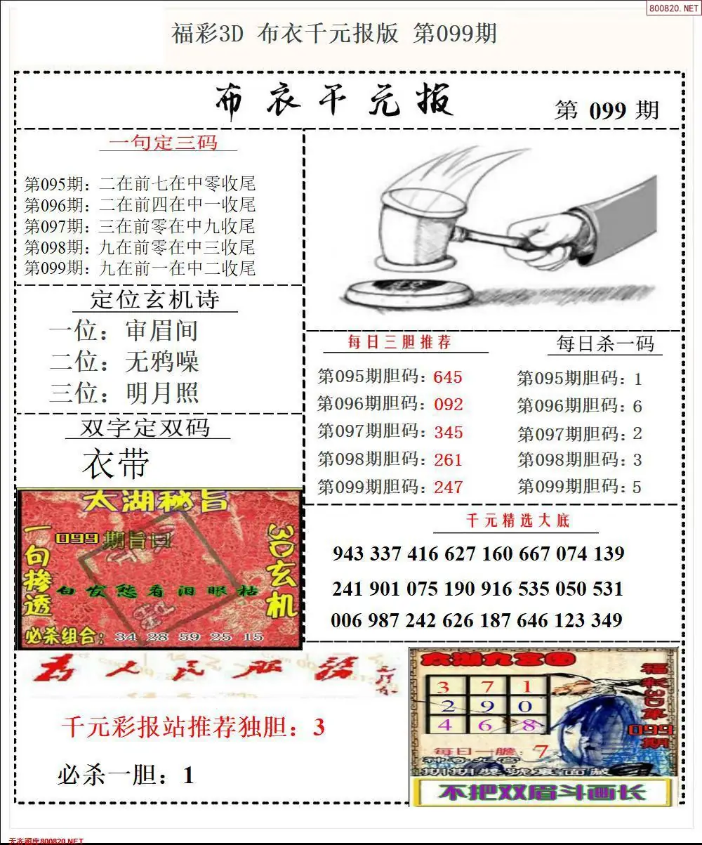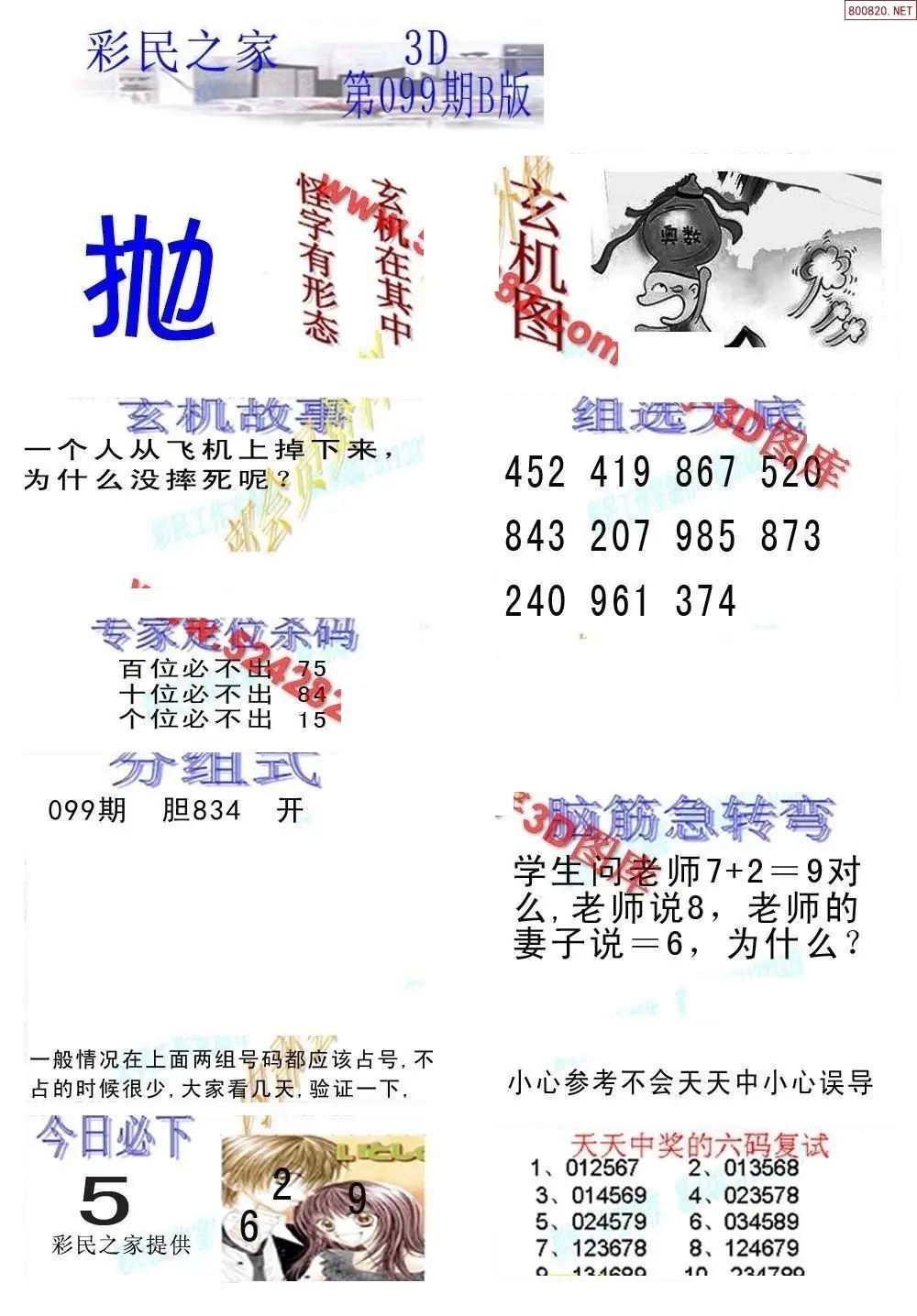 (8)26年099期今日3d各类彩报汇总