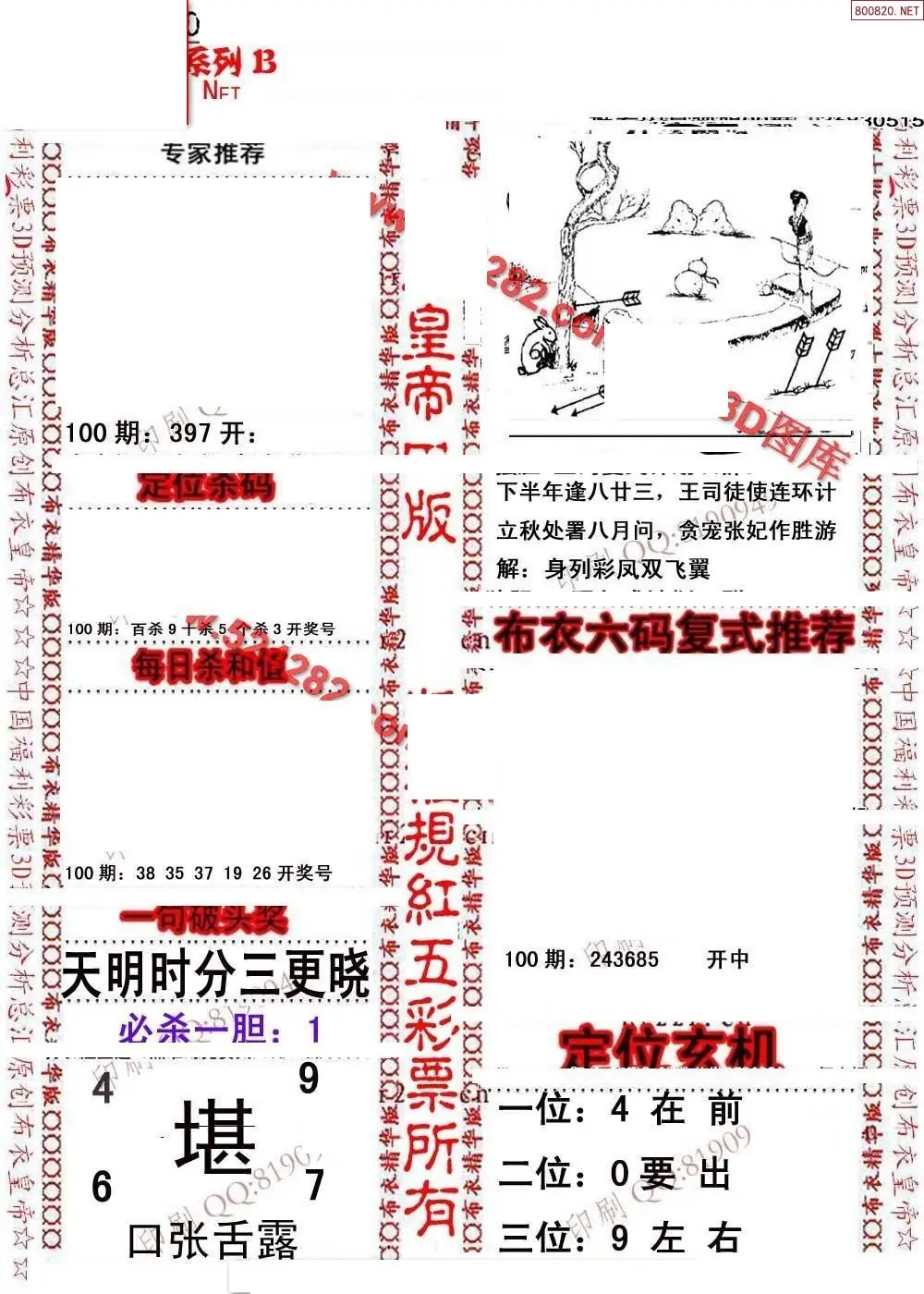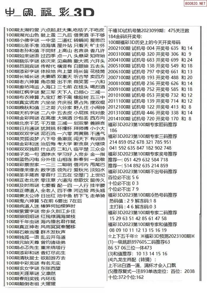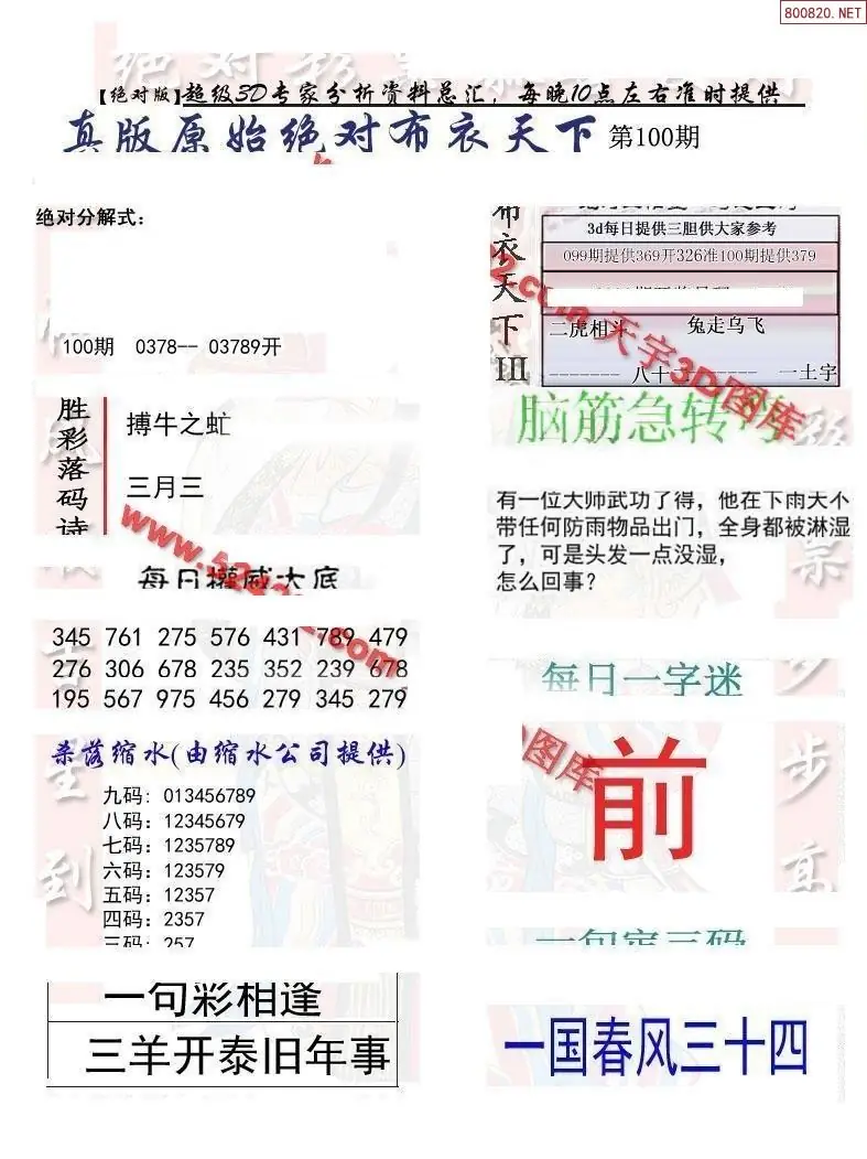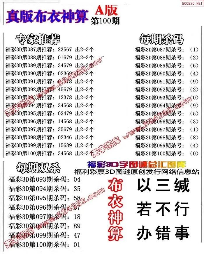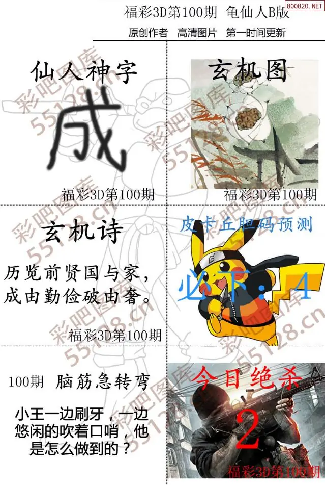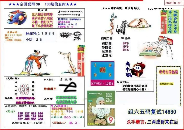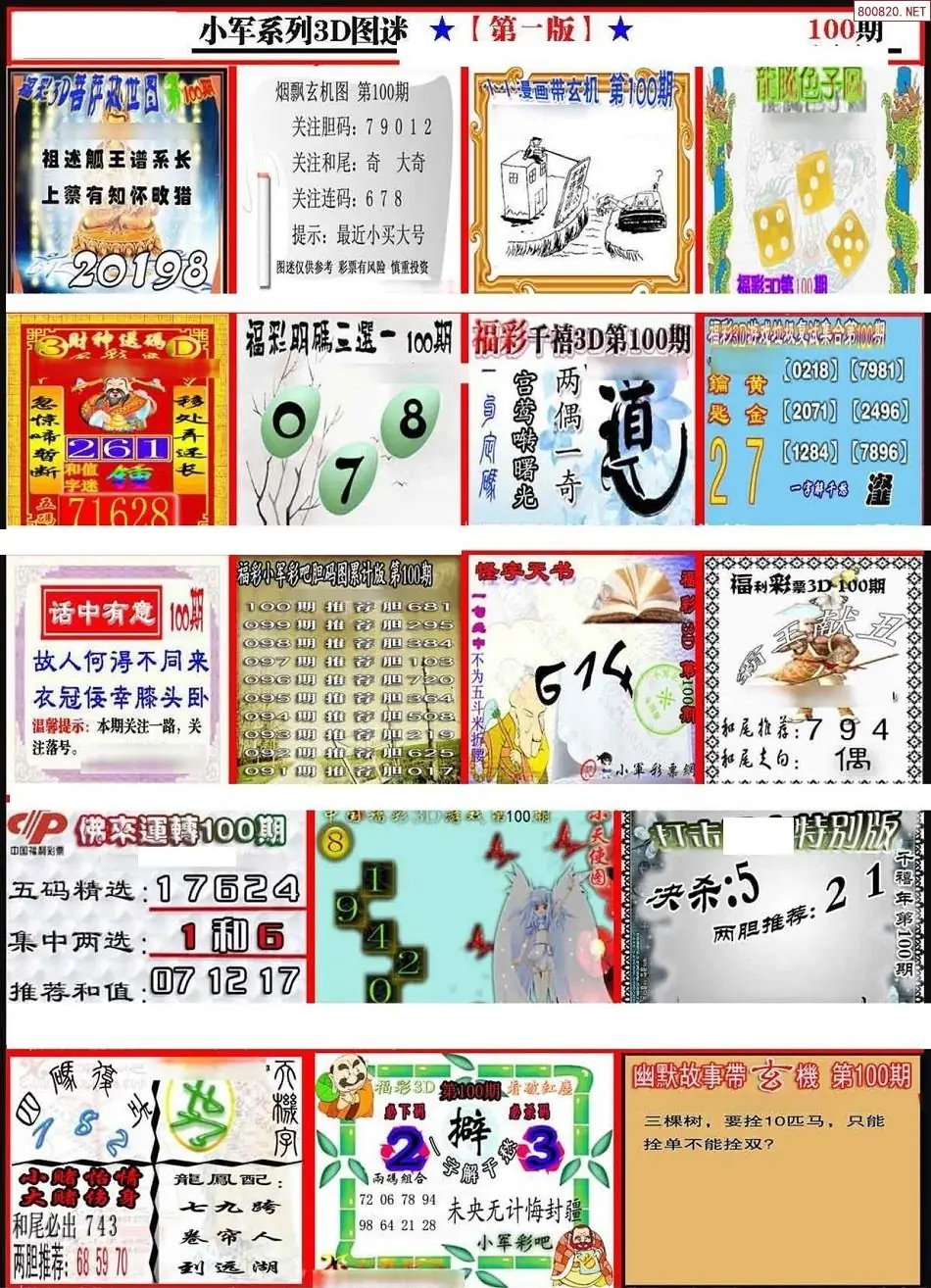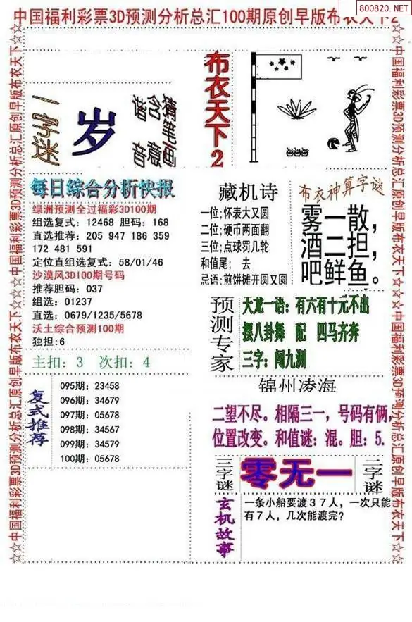 (3)2026100期3D预测总汇全图_福彩3d图谜字谜总汇