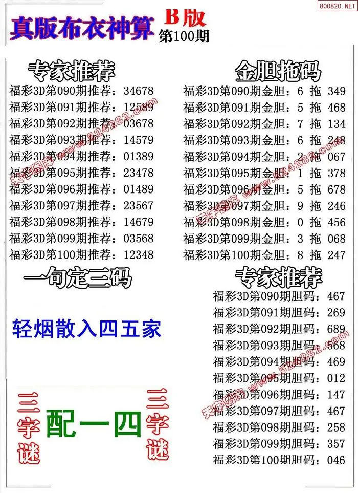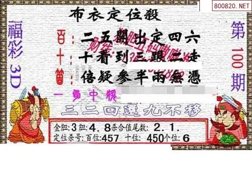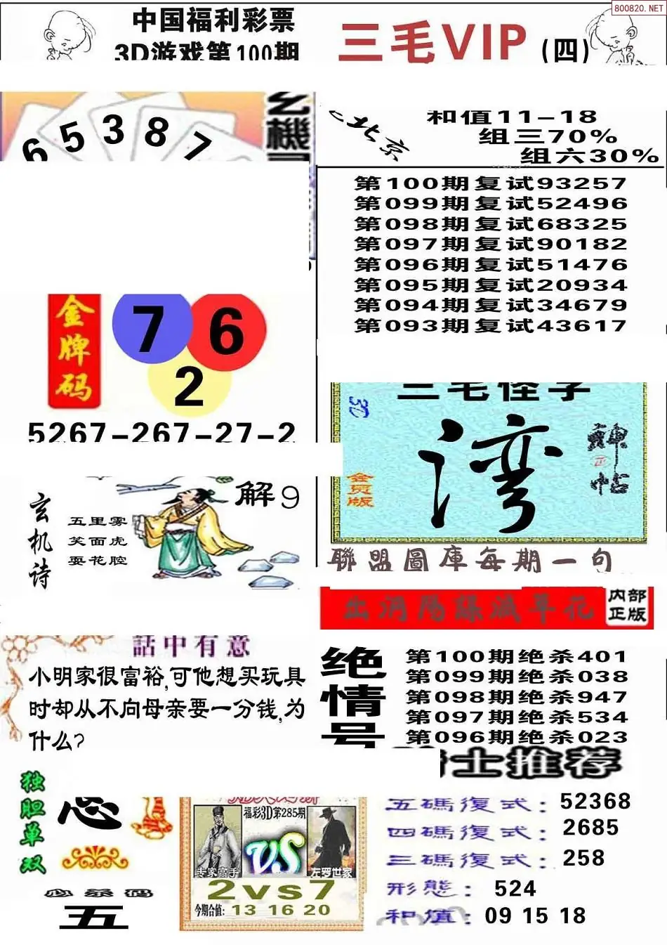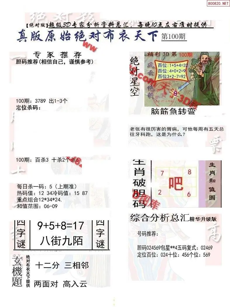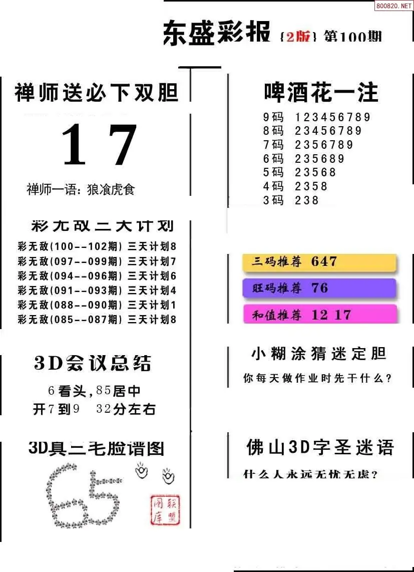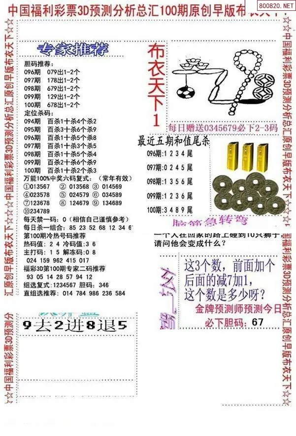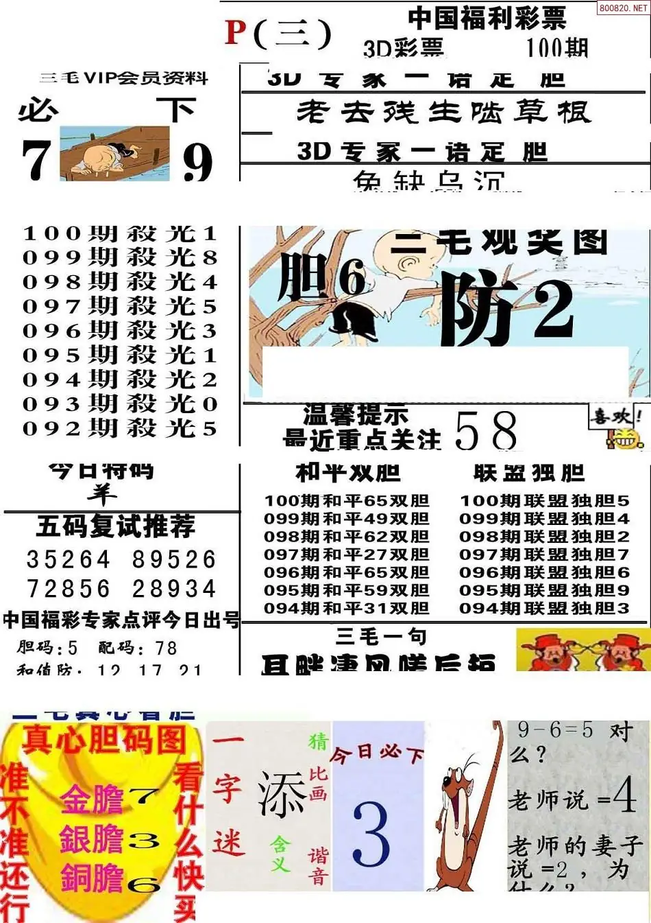 (3)2026100期3D预测总汇全图_福彩3d图谜字谜总汇