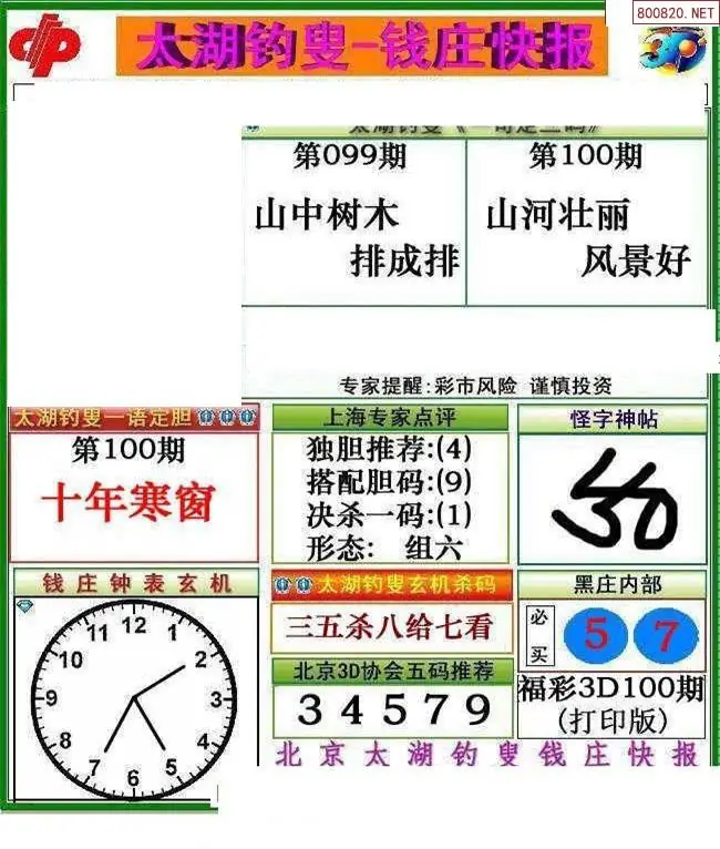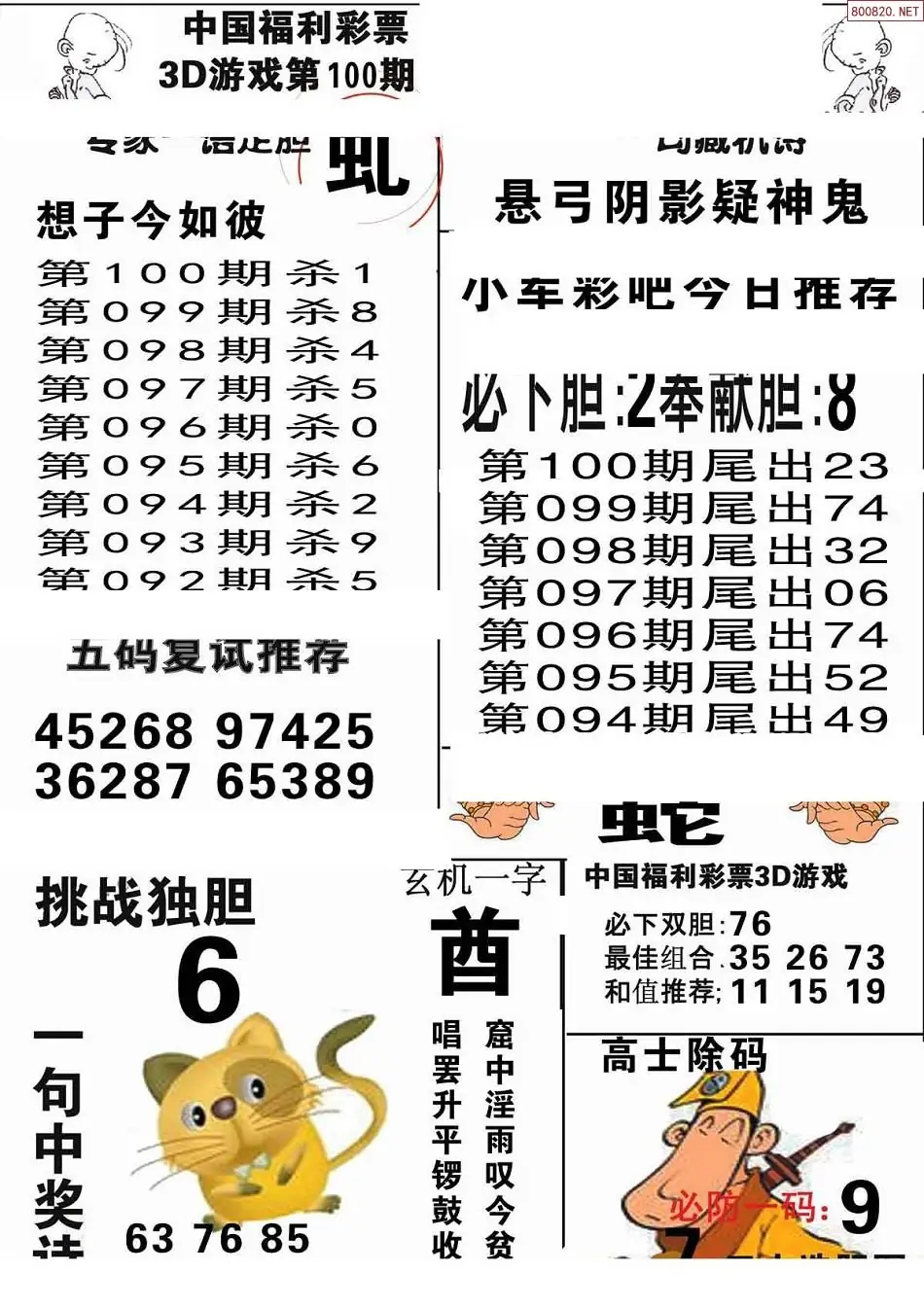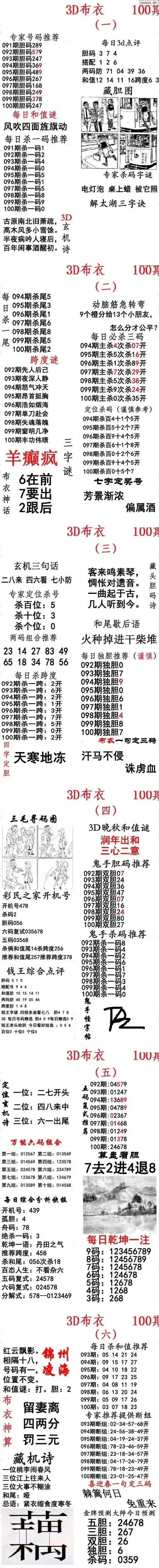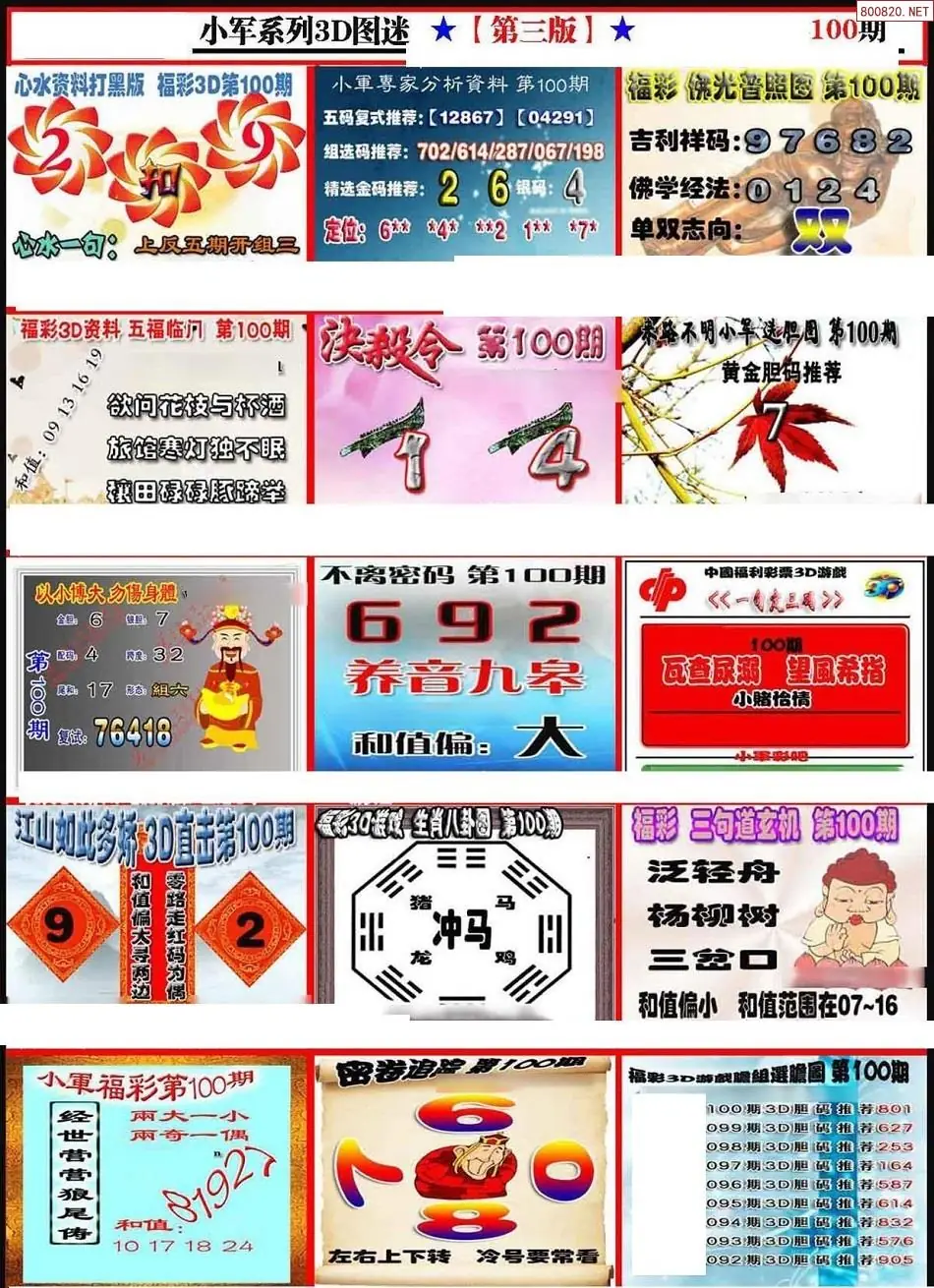 (2)26年100期本期3d图迷汇总_福彩3D图谜总汇图