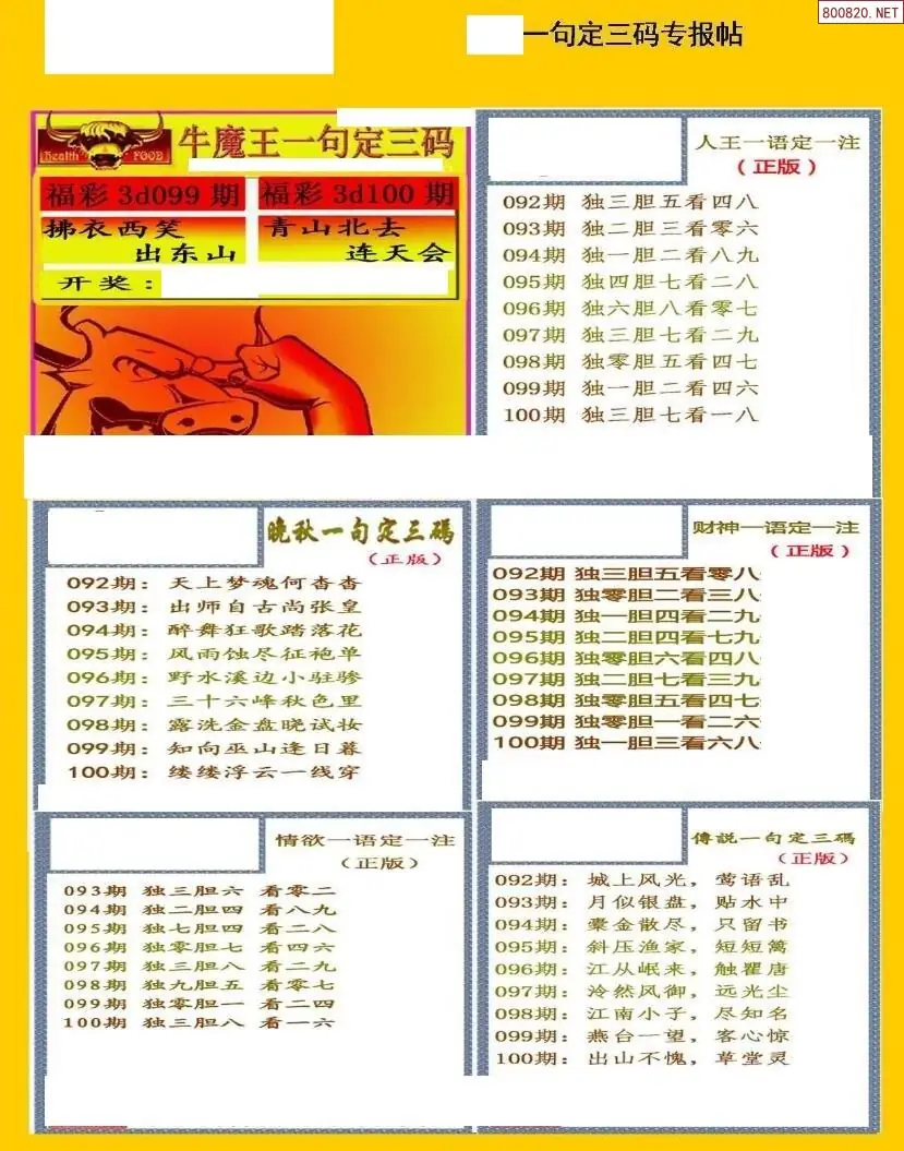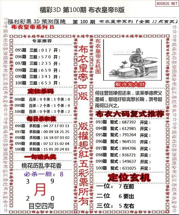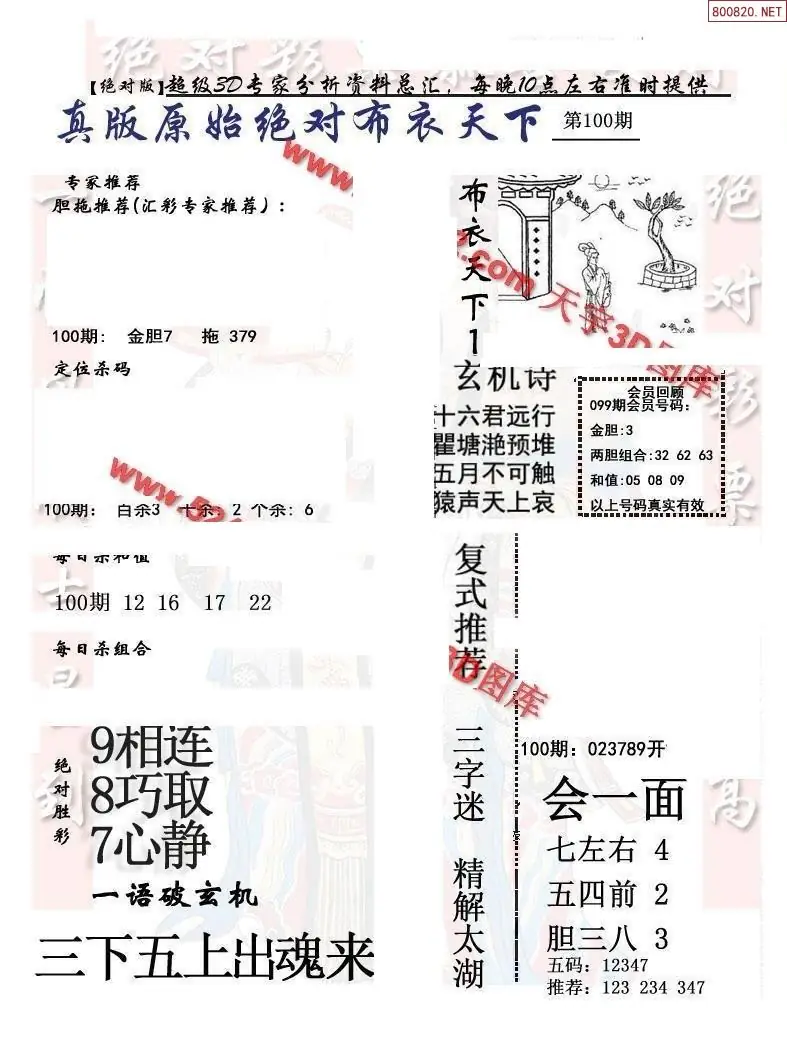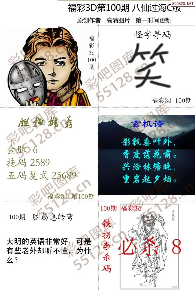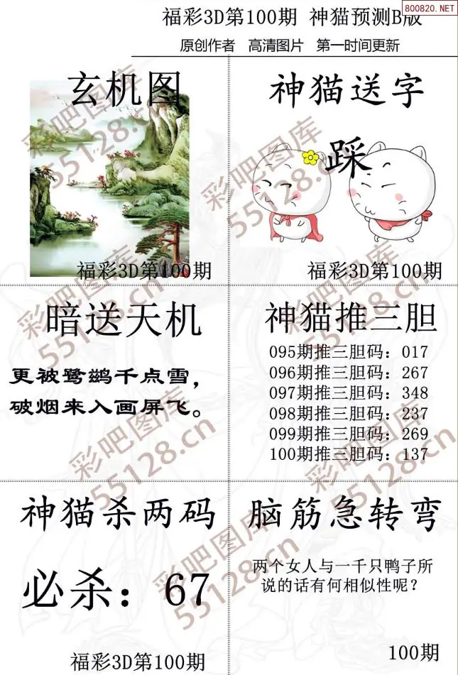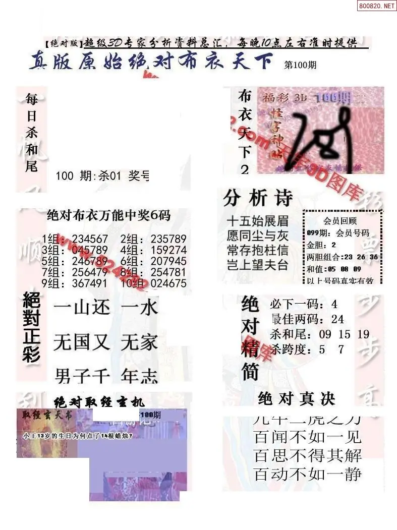 (2)26年100期本期3d图迷汇总_福彩3D图谜总汇图