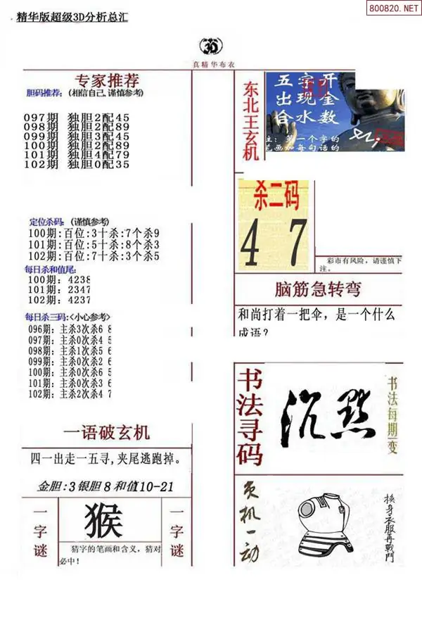 (3)2026102期3D预测总汇全图_福彩3d图谜字谜总汇