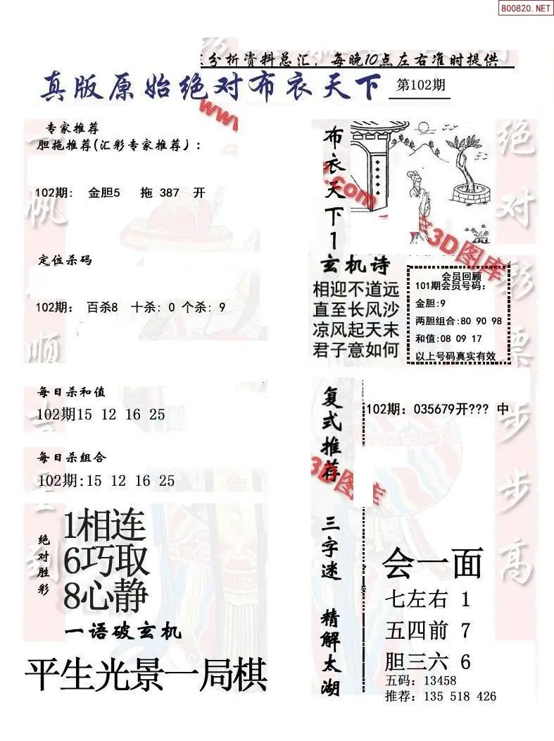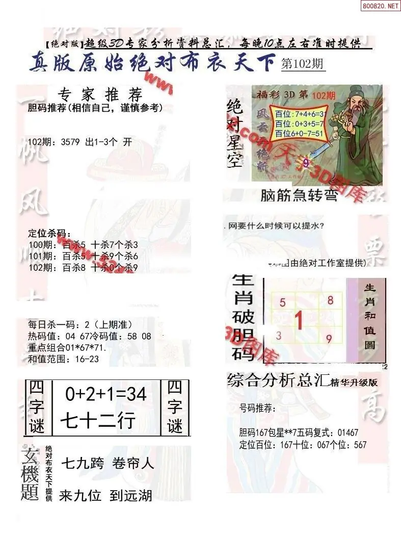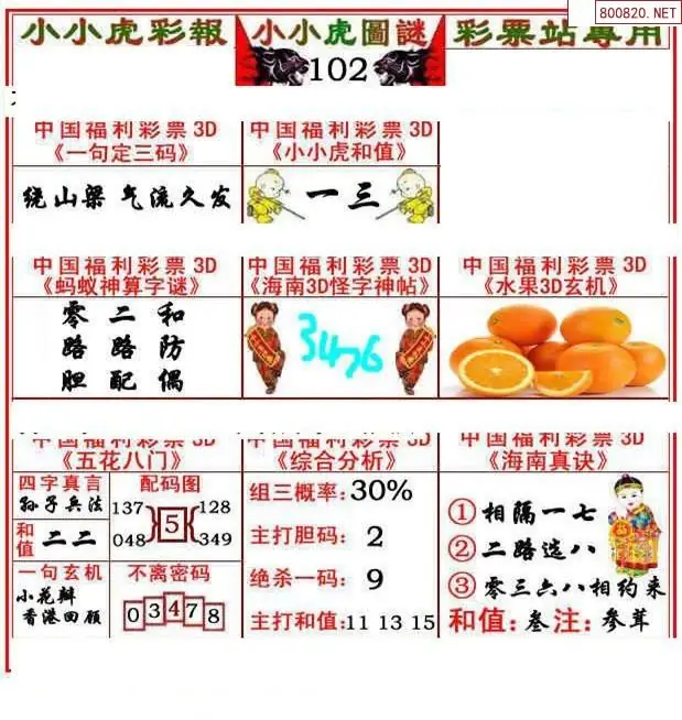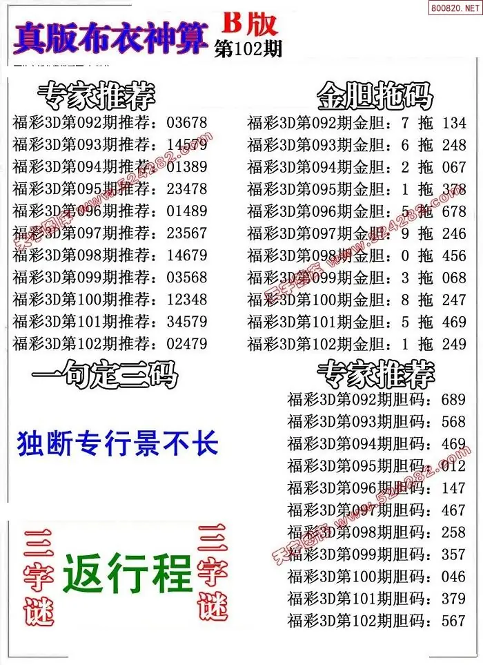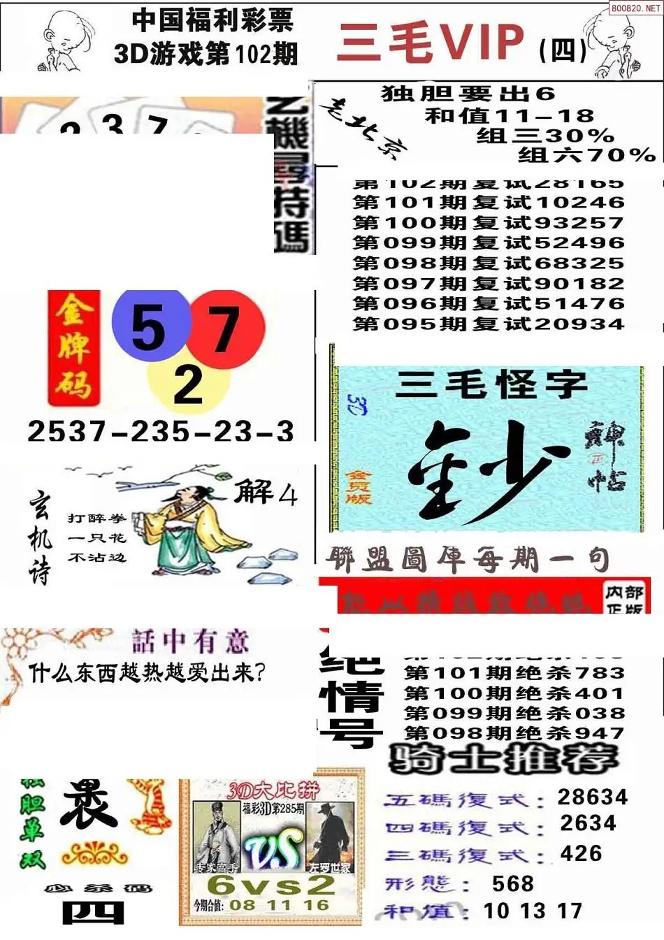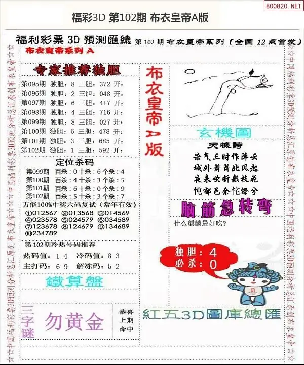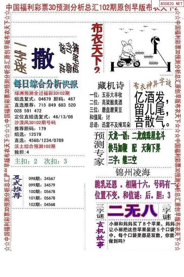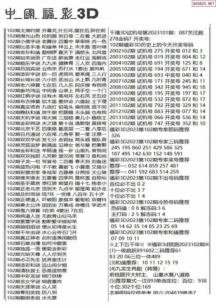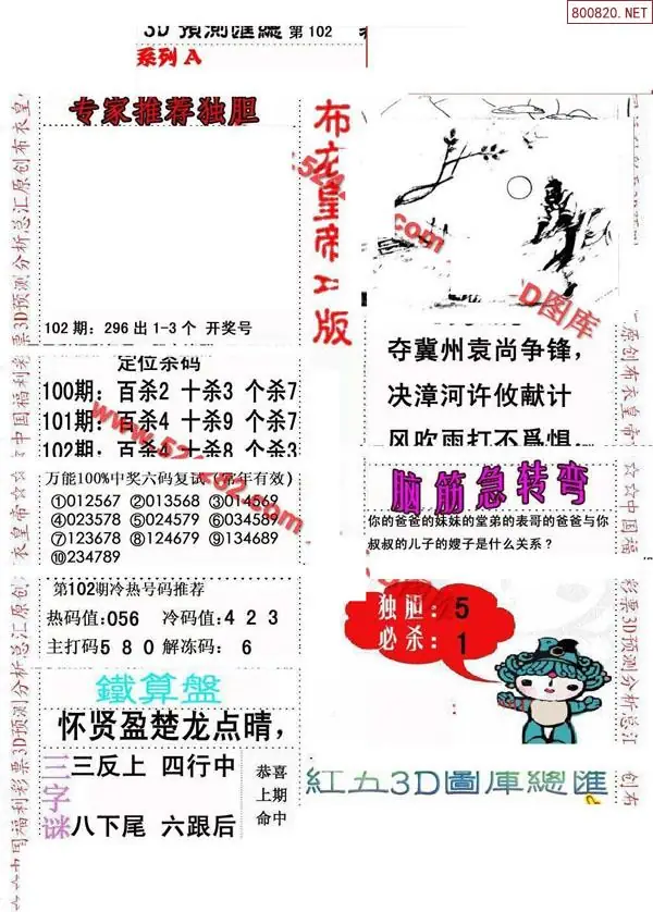 (3)2026102期3D预测总汇全图_福彩3d图谜字谜总汇