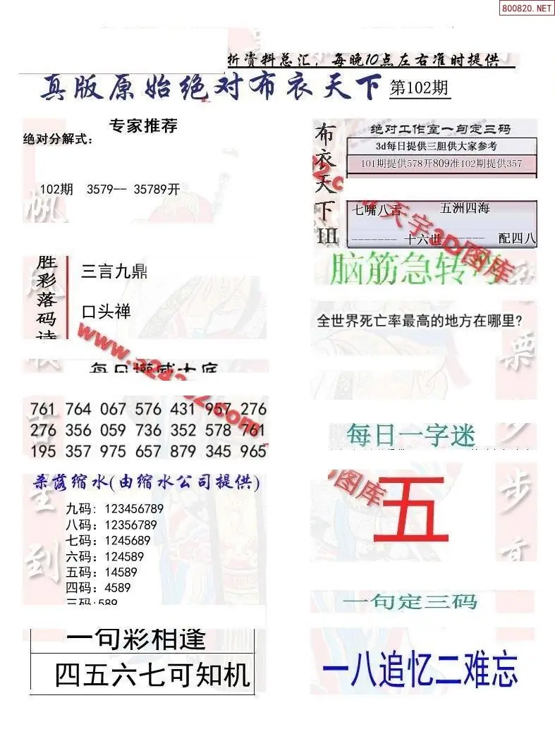 (2)26年102期本期3d图迷汇总_福彩3D图谜总汇图