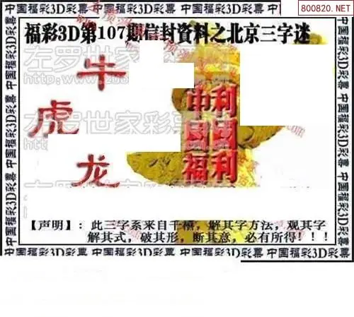 (3)2026107期3D预测总汇全图_福彩3d图谜字谜总汇