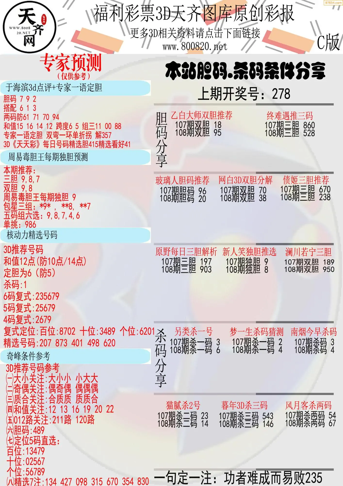 (8)26年108期今日3d各类彩报汇总