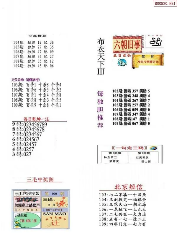 (2)26年109期本期3d图迷汇总_福彩3D图谜总汇图