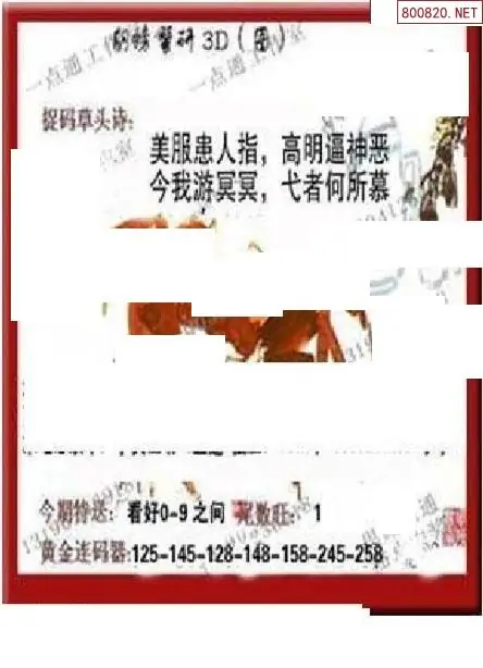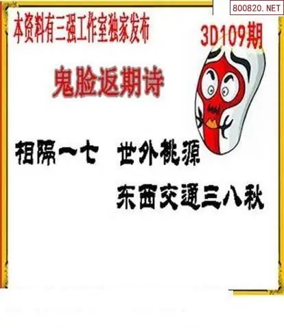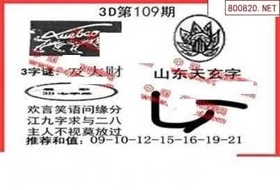 (3)2026109期3D预测总汇全图_福彩3d图谜字谜总汇