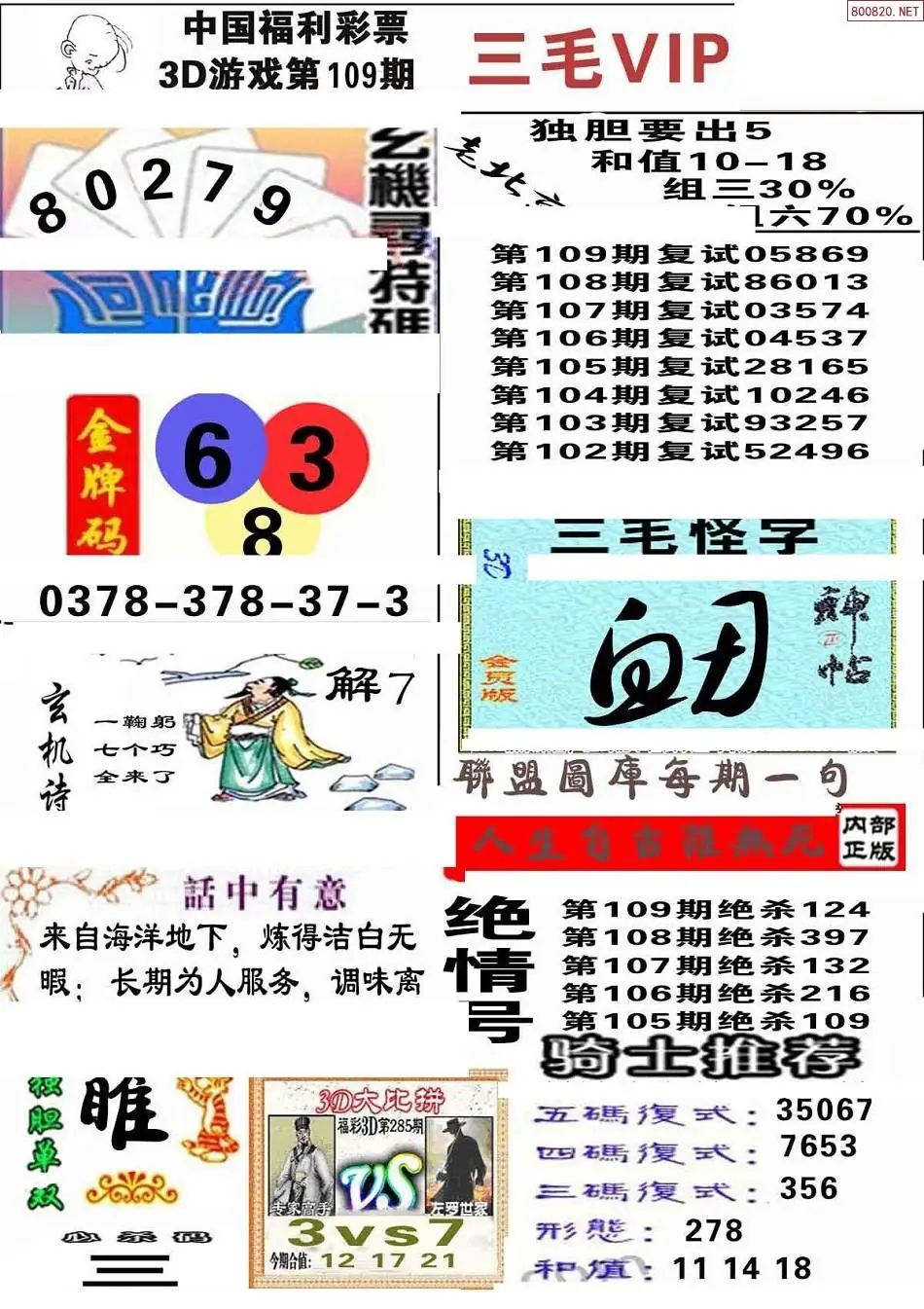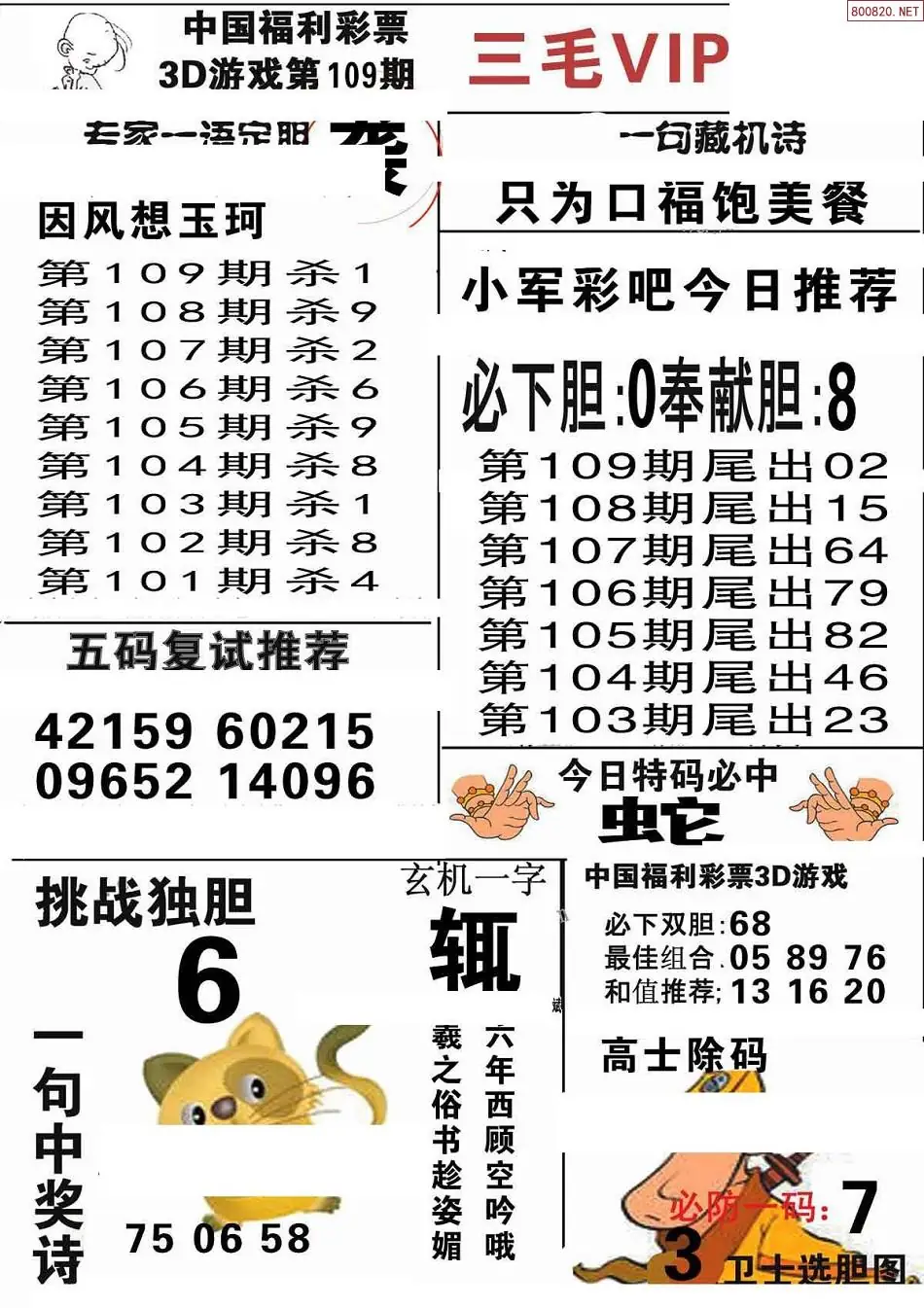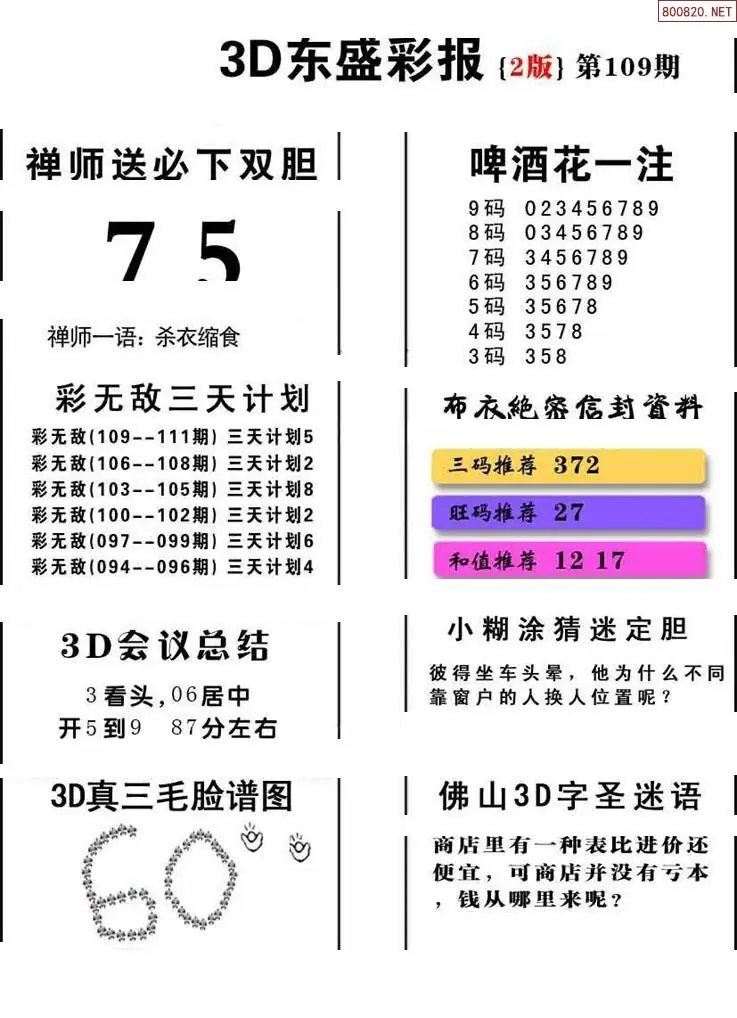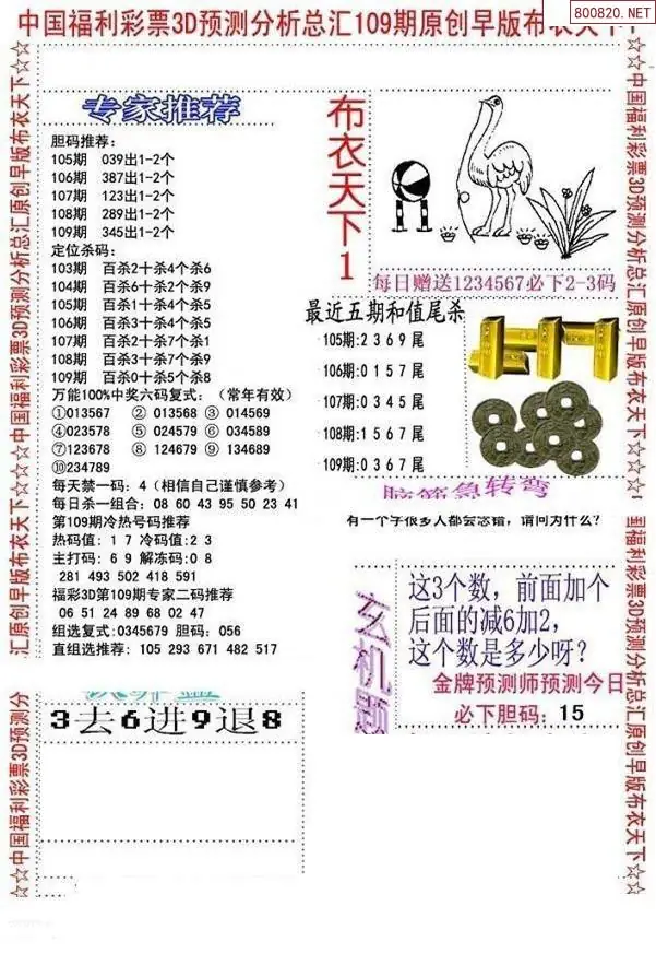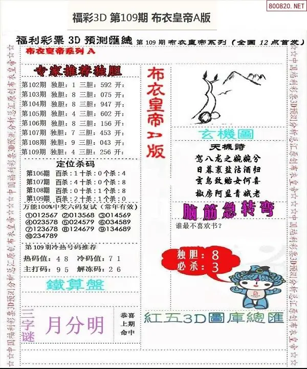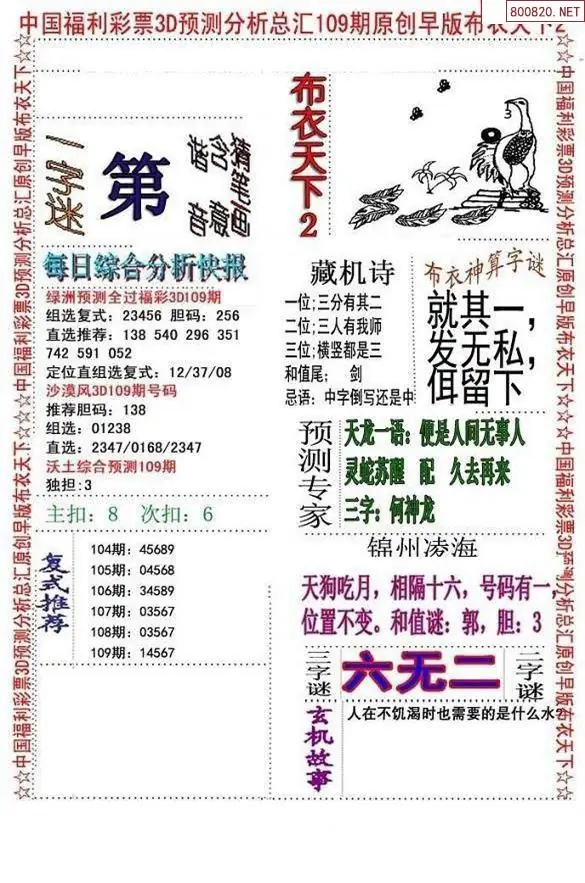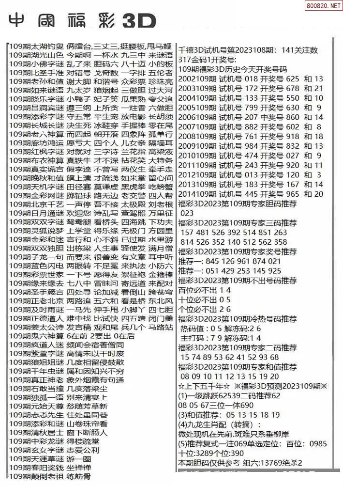 (3)2026109期3D预测总汇全图_福彩3d图谜字谜总汇