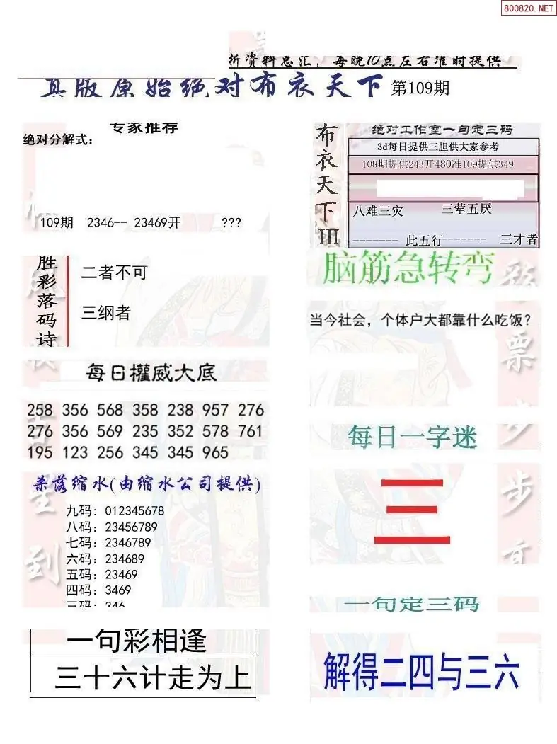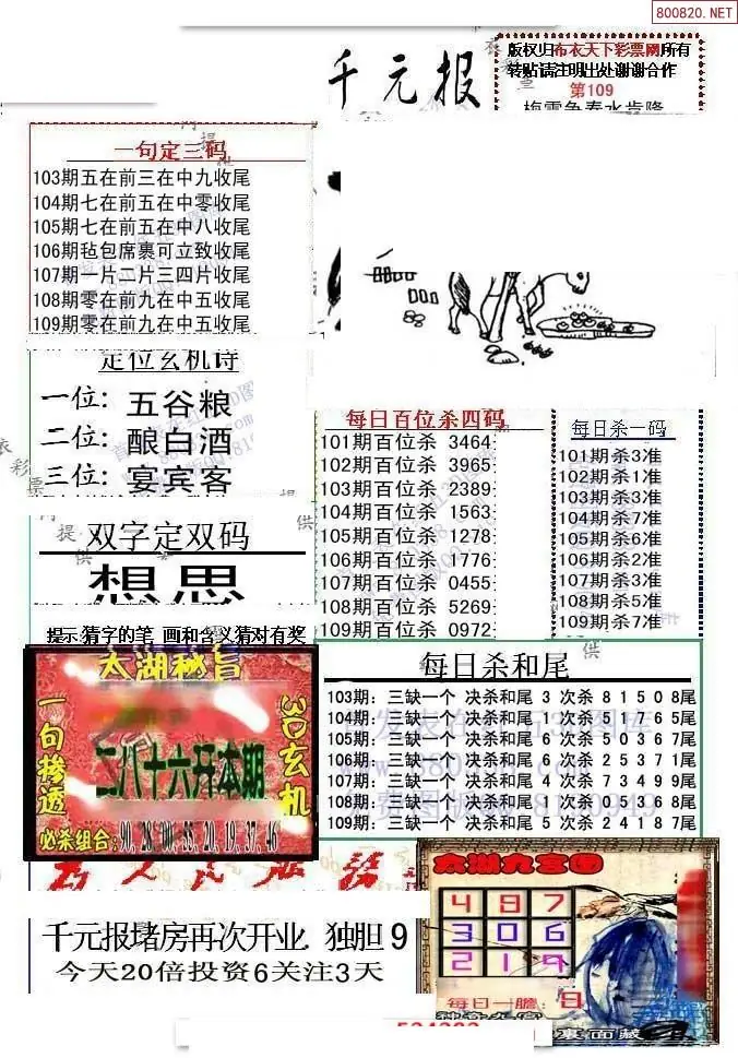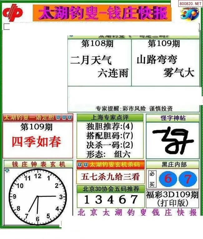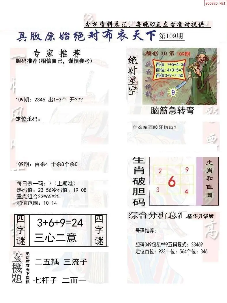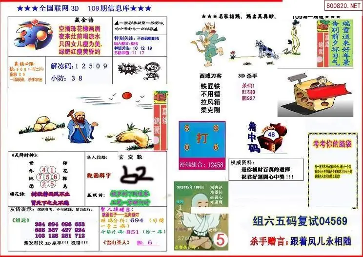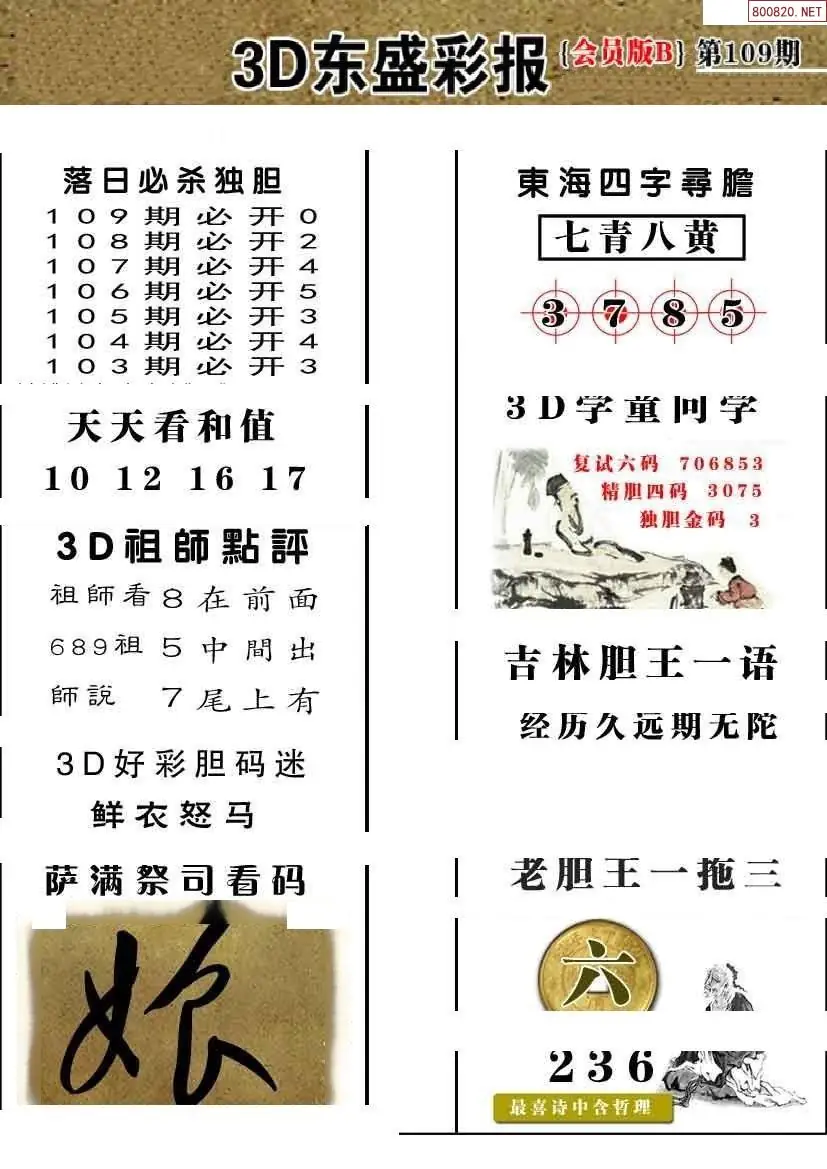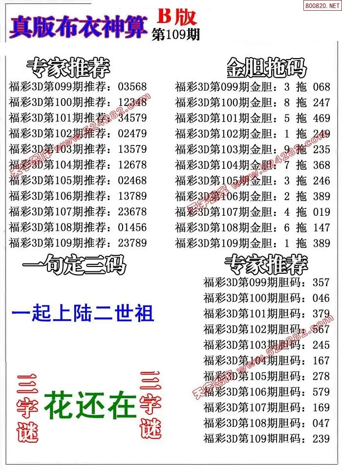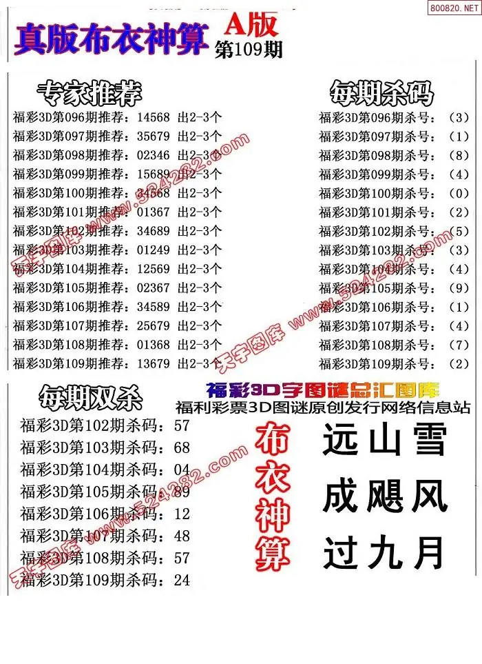 (3)2026109期3D预测总汇全图_福彩3d图谜字谜总汇