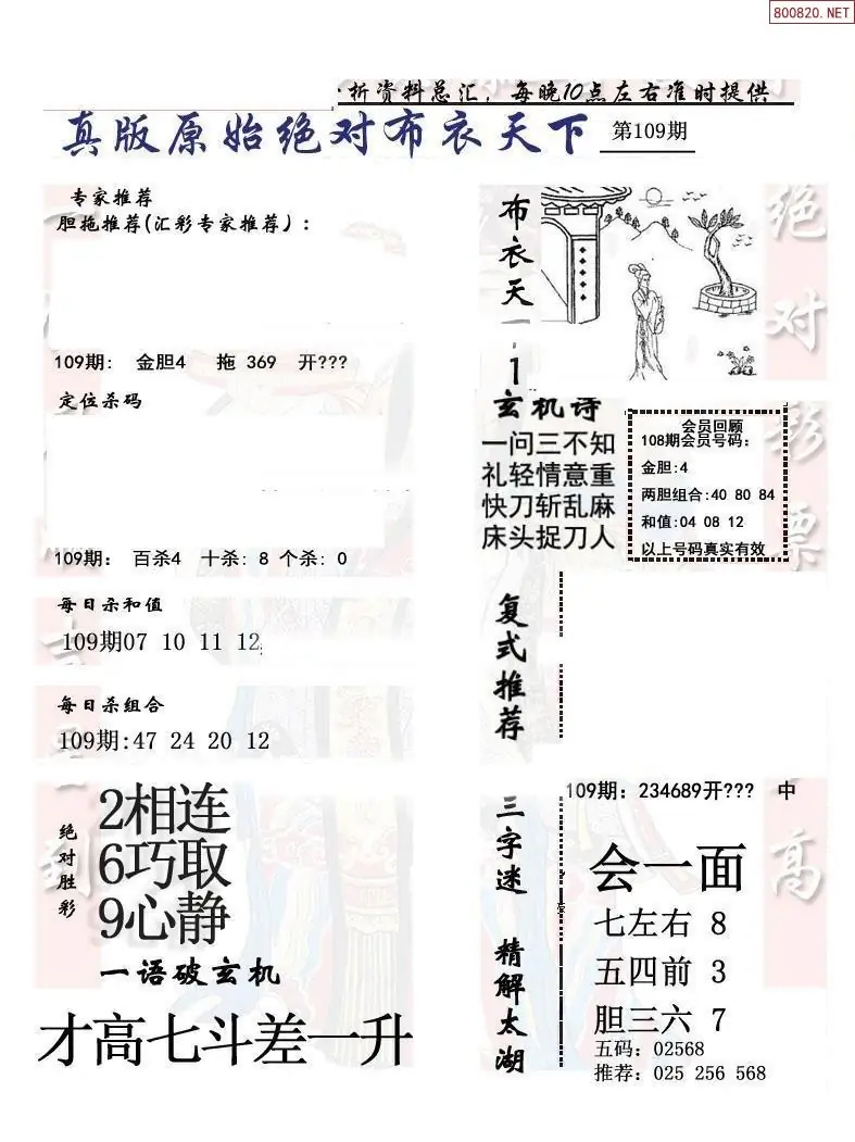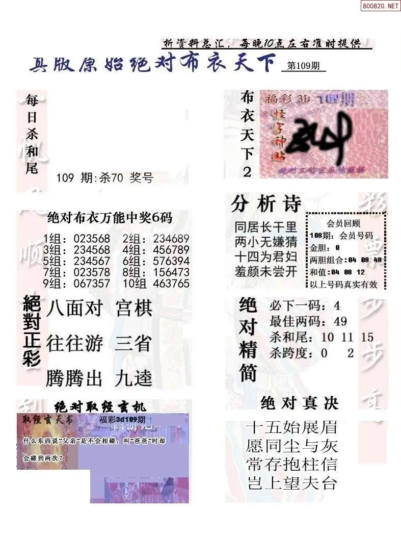 (2)26年109期本期3d图迷汇总_福彩3D图谜总汇图