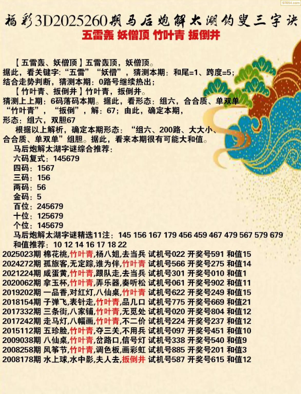 25年260期马后炮解3d太湖钓叟之 五雷轰
