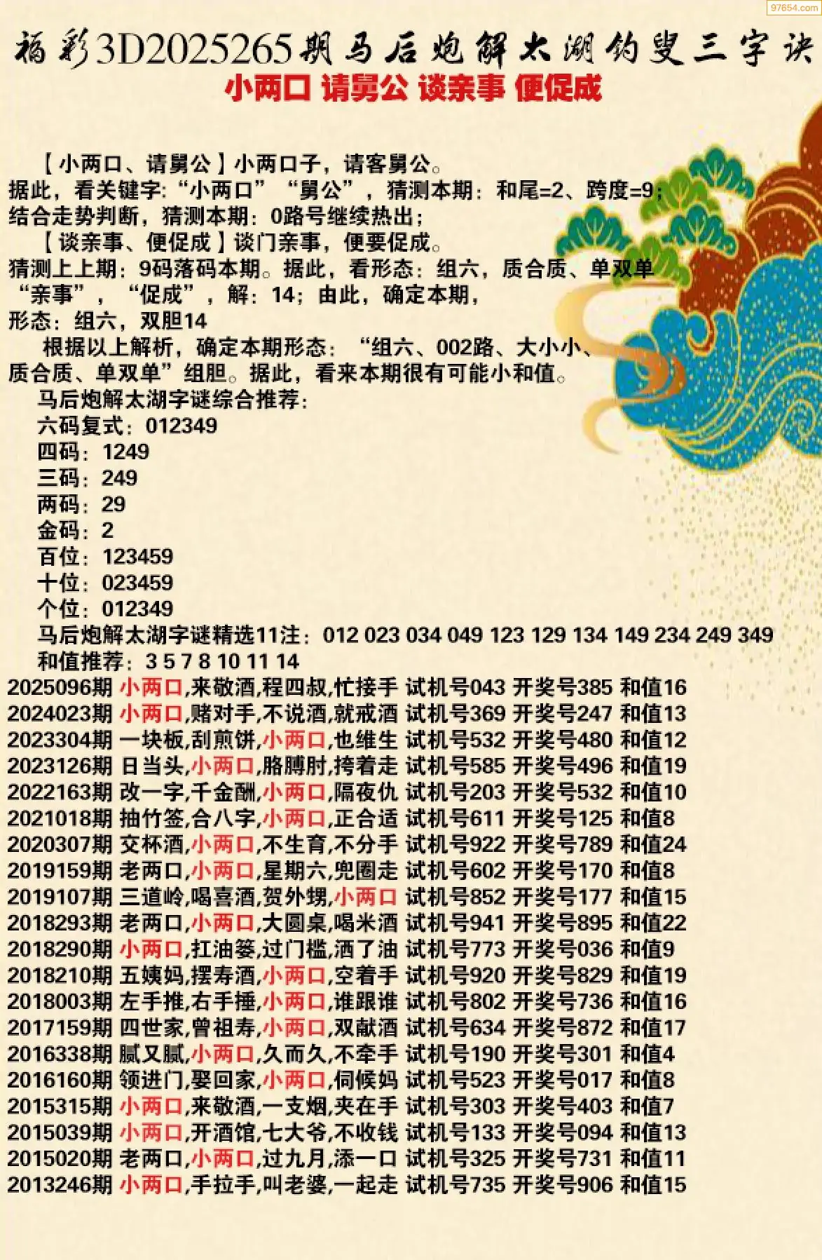 25265期福彩3d太湖钓叟三字诀历史汇总