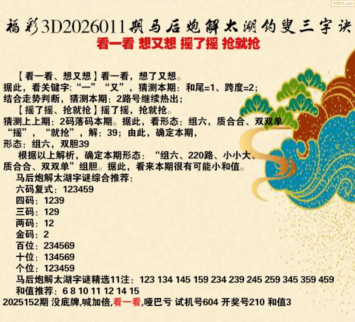 丹东解26年011期太湖3D字谜天龙一语锦州凌海