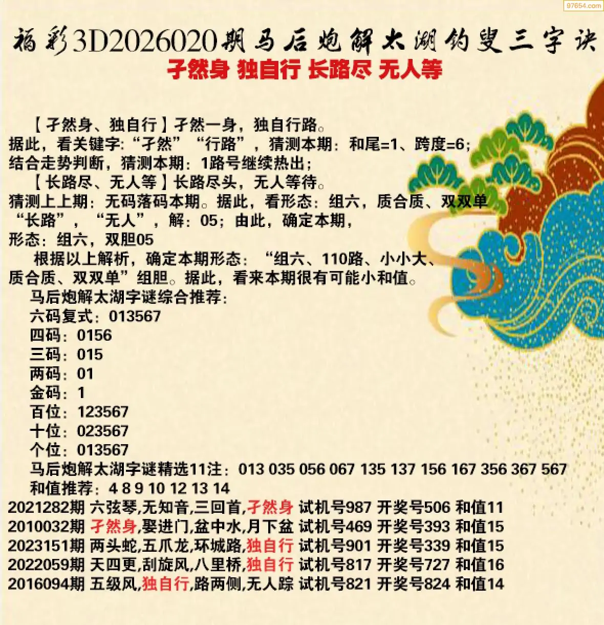 26020期福彩3d太湖钓叟三字诀历史汇总