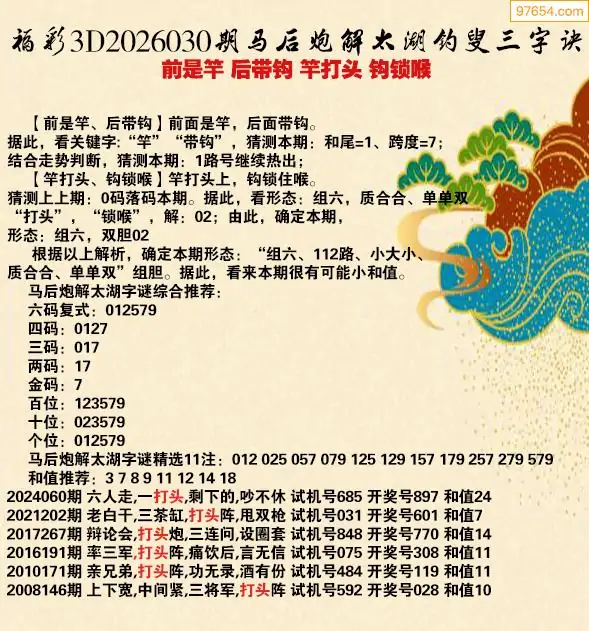 26030期福彩3d太湖钓叟三字诀