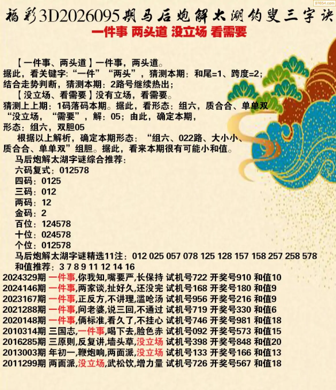 26095期福彩3d太湖钓叟三字诀历史汇总