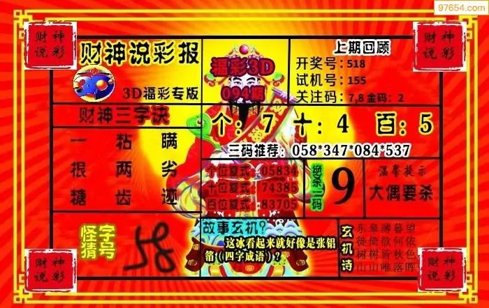 26年094期财神说彩3D综合图(原创)_3d财神到财神送胆
