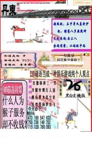 26年100期丹东全图3D图谜 _今日丹东先锋快报全图迷