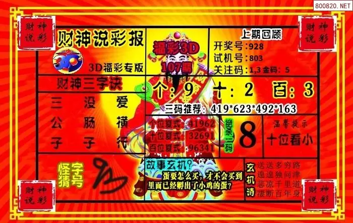 26年107期财神说彩3D综合图(原创)_3d财神到财神送胆