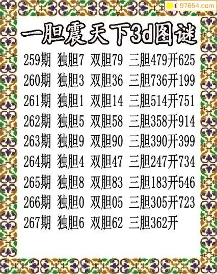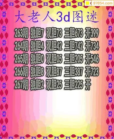 2025267期彩彩网3d原创图迷搜集(天中整理)