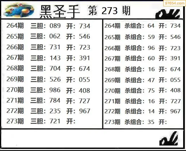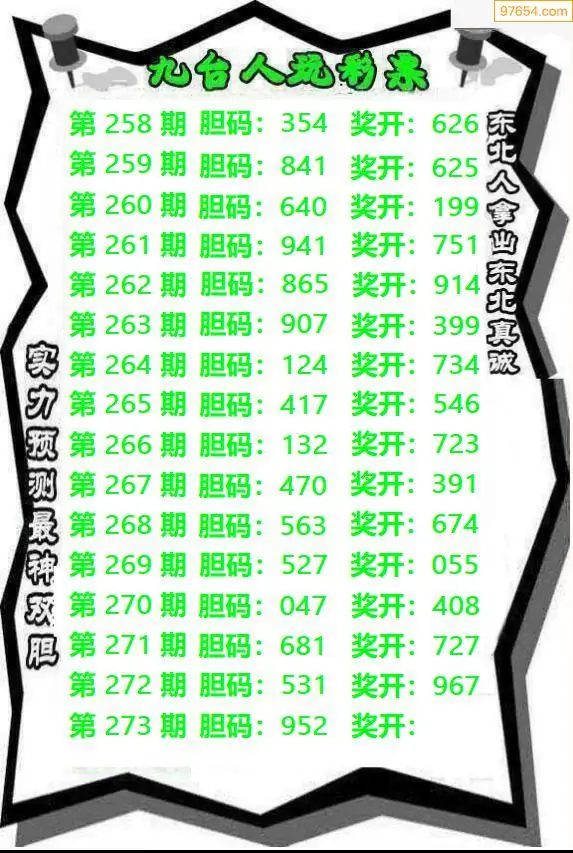天齐网3d25年273期胆码图 胆:97