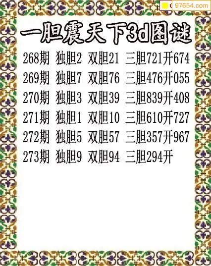 2025273期彩彩网3d原创图迷搜集(天中整理)