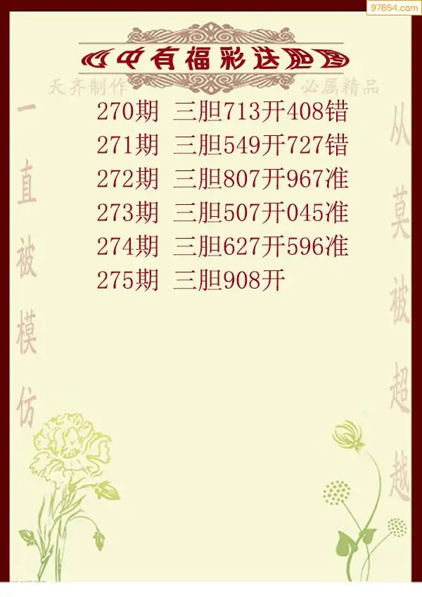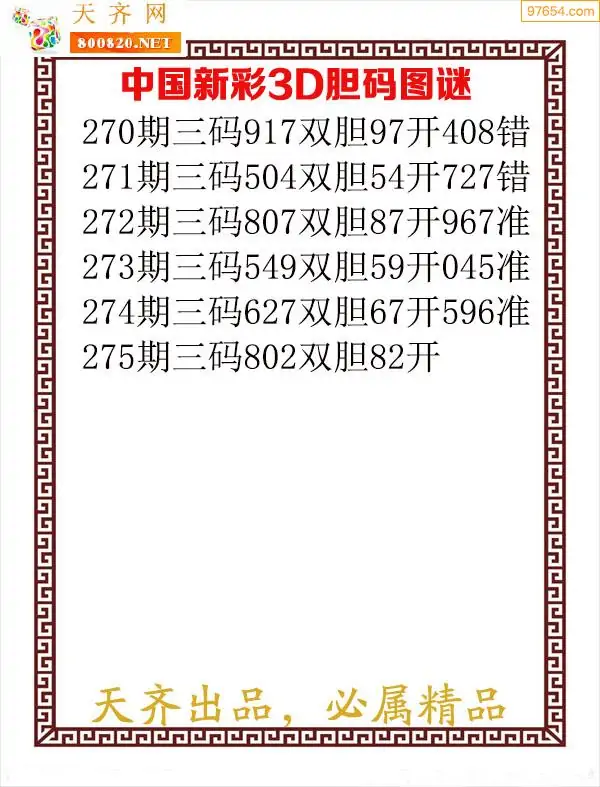 天齐网3d25年275期胆码图 胆:62