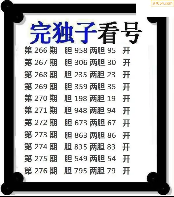 天齐网3d25年276期胆码图 胆:98
