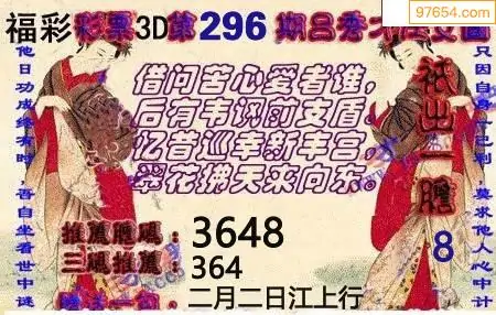 牛彩网296期福彩胆码图汇总 胆:46
