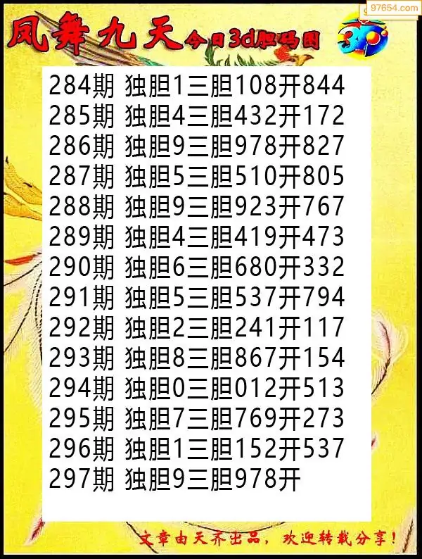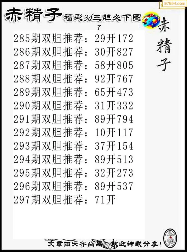 2025297期彩彩网3d原创图迷搜集(天中整理)