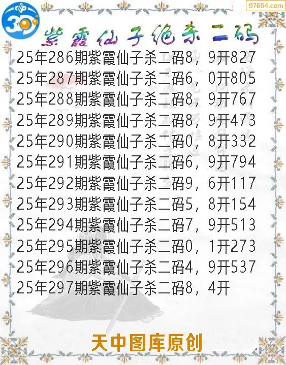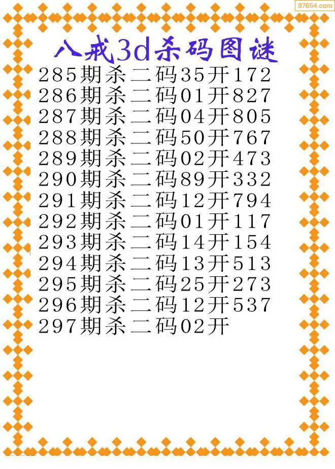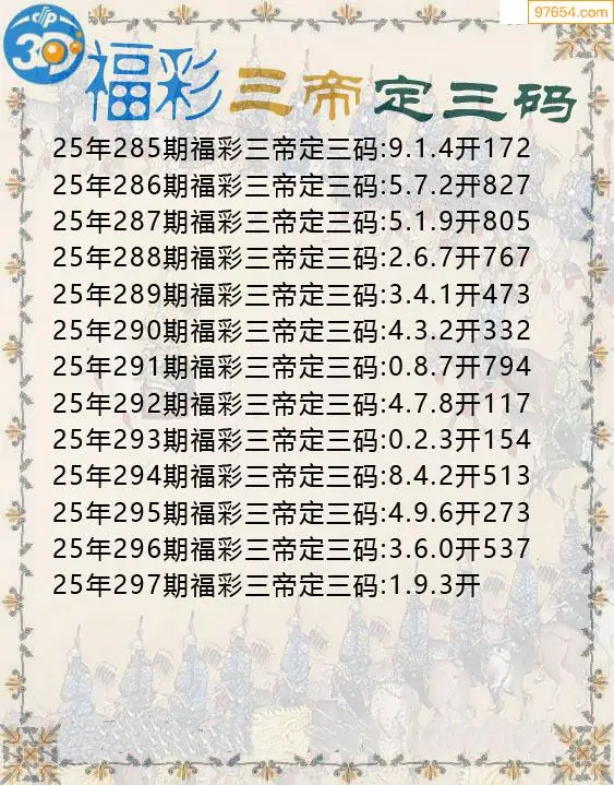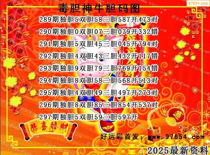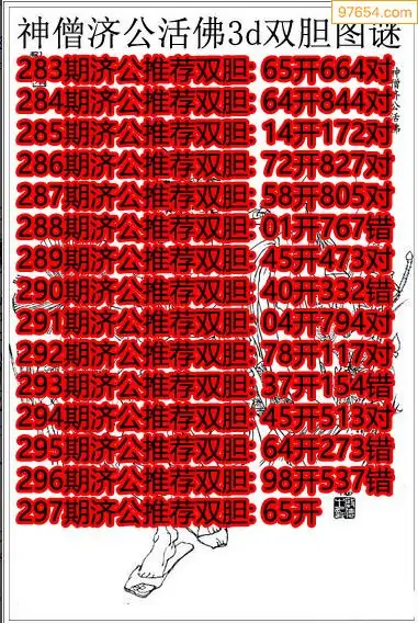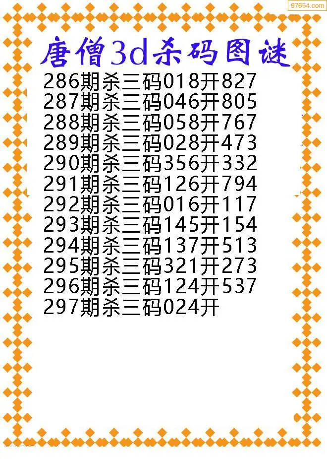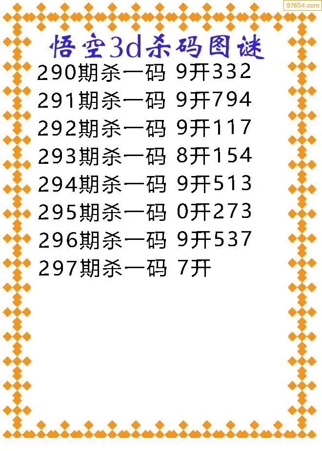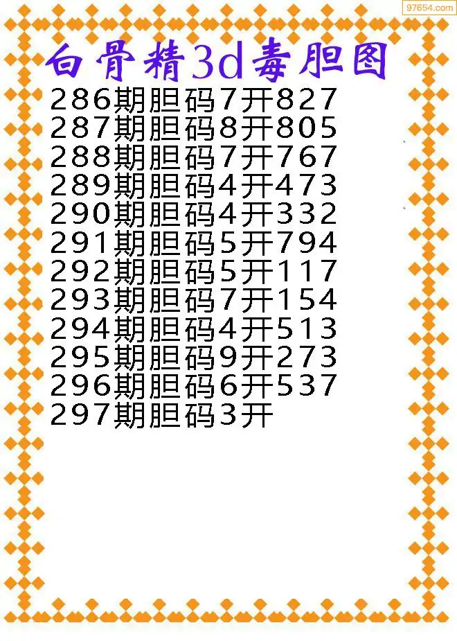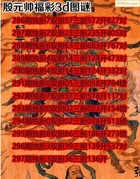 天齐网3d25年297期胆码图 胆:97