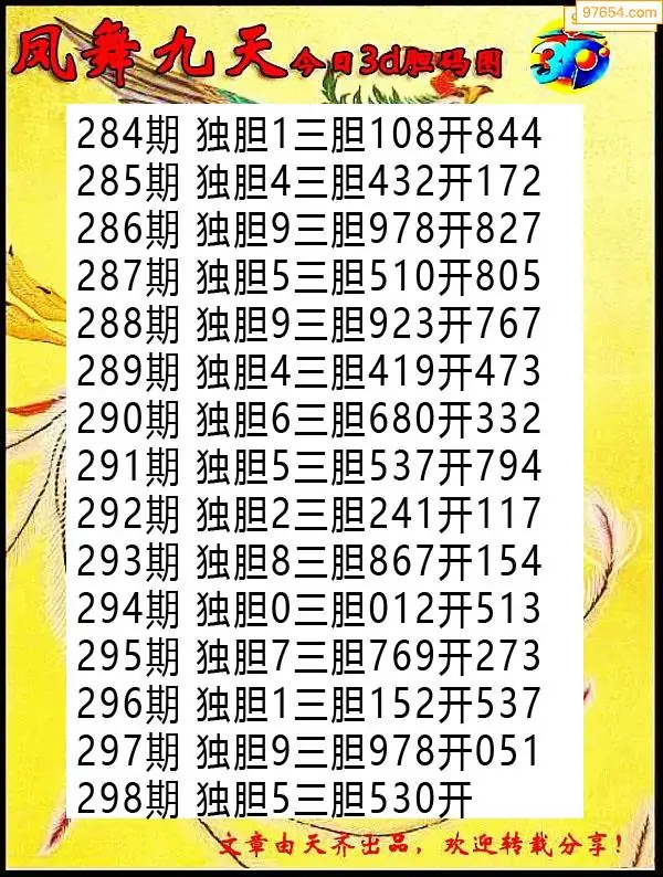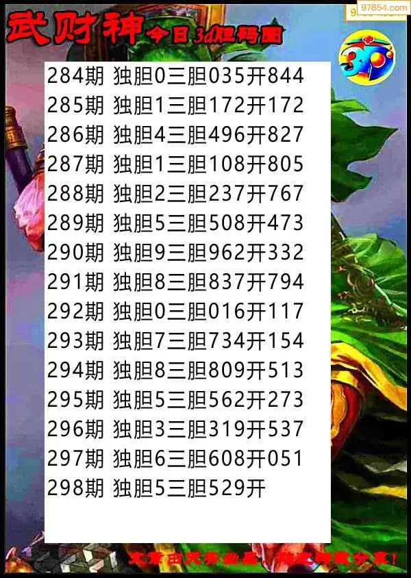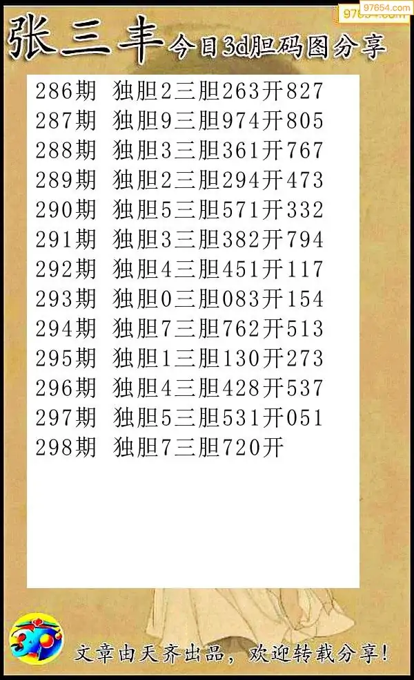 2025298期彩彩网3d原创图迷搜集(天中整理)