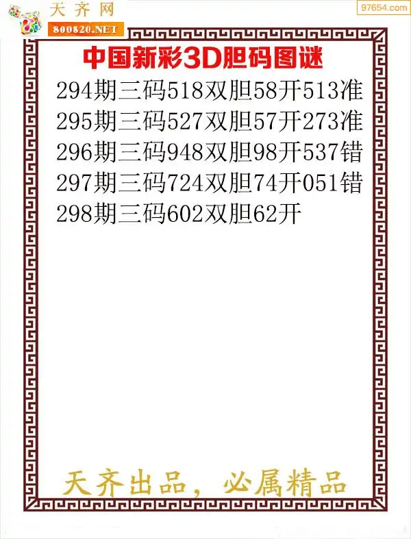 天齐网3d25年298期胆码图 胆:72