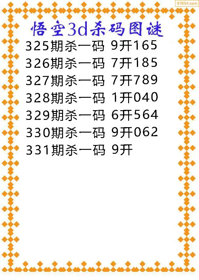 25332期3D精品胆杀码图迷汇总