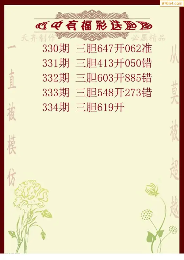 天齐网3d25年334期胆码图 胆:69