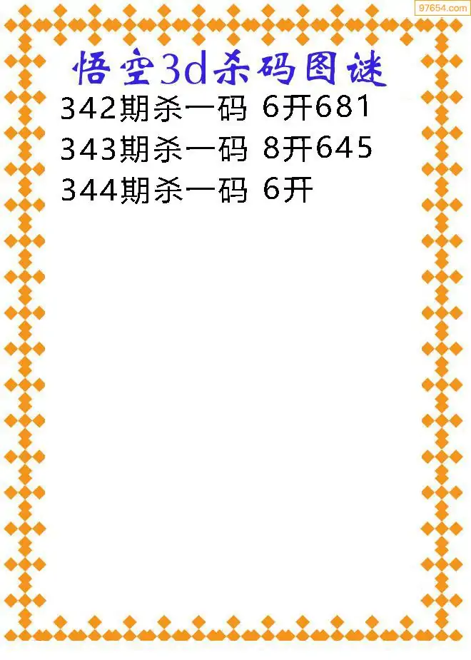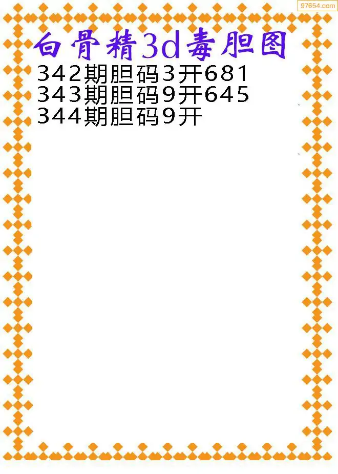 天齐网3d25年344期胆码图 胆:60