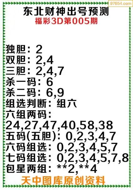 3d原创005期东北财神预测