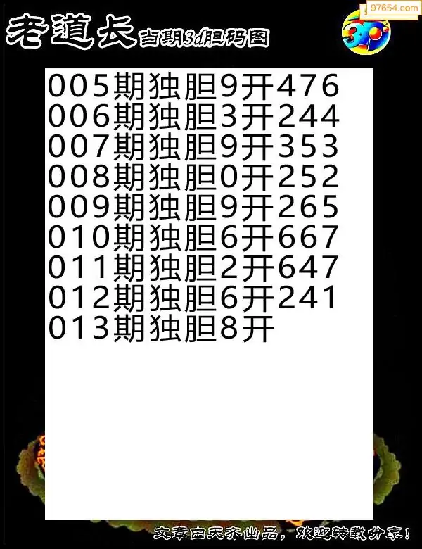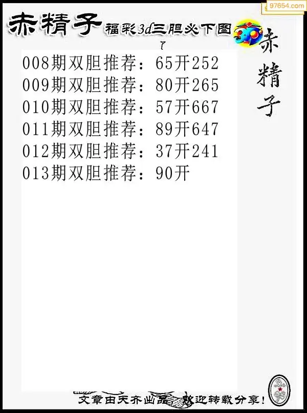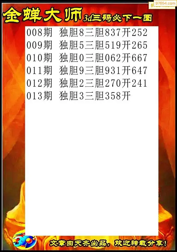 天齐网3d26年013期胆码图 胆:97