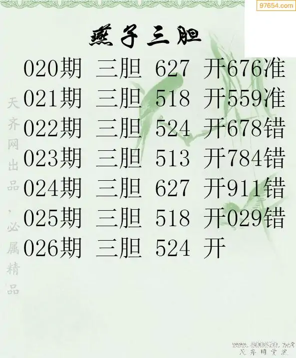 天齐网3d26年026期胆码图 胆:59