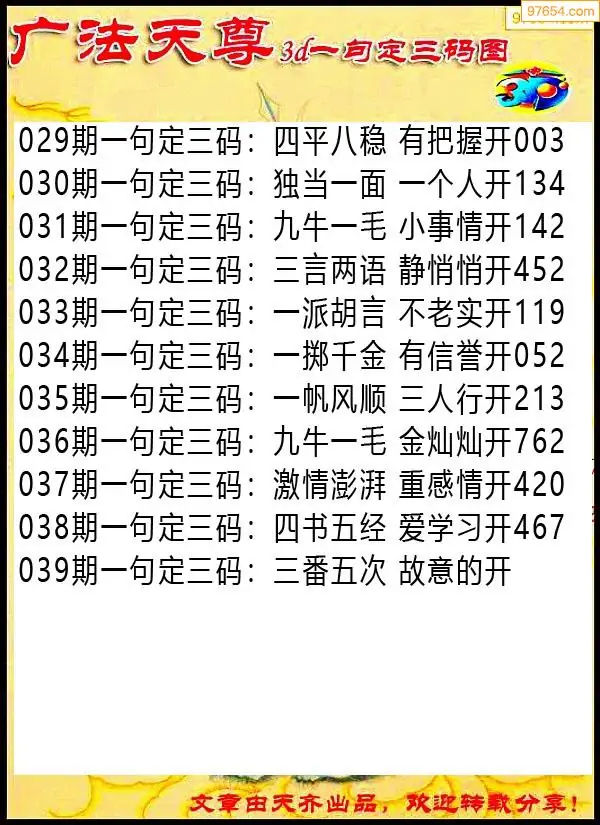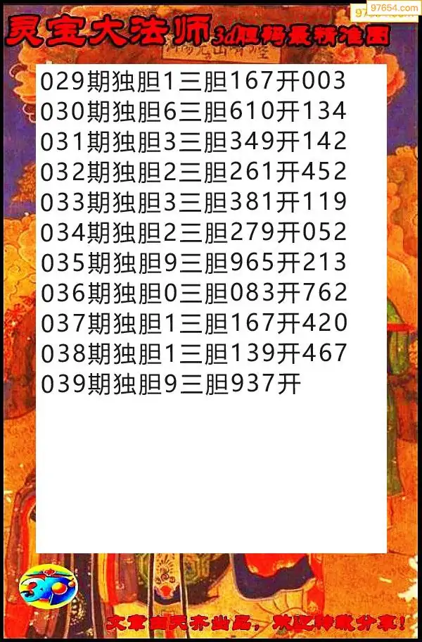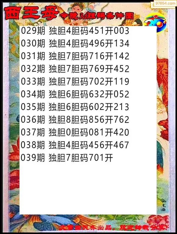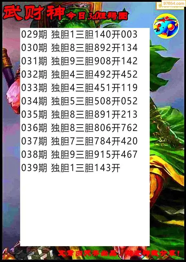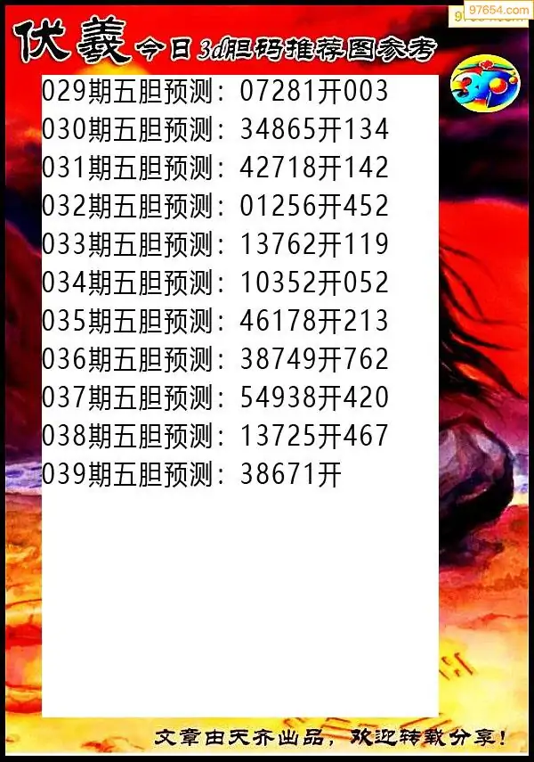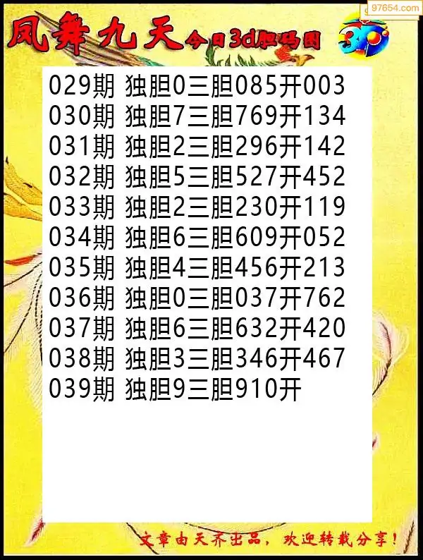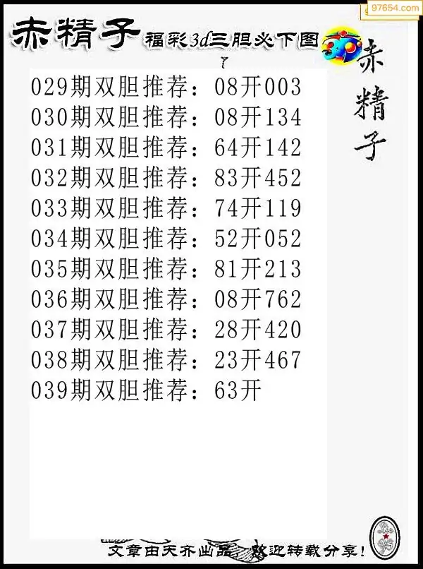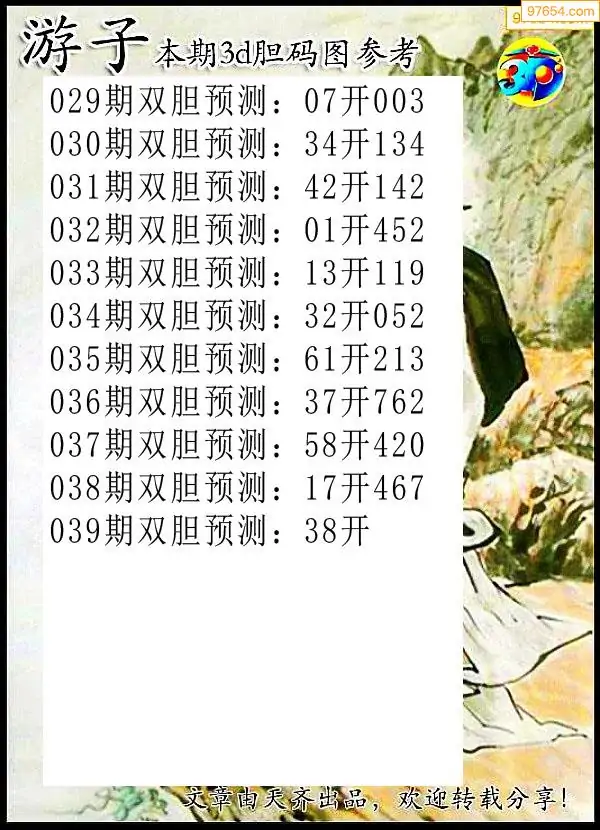 039期97654本站收集胆码出号预测