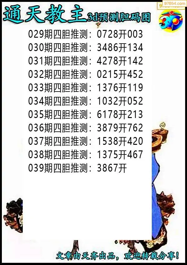 天齐网3d26年039期胆码图 胆:87