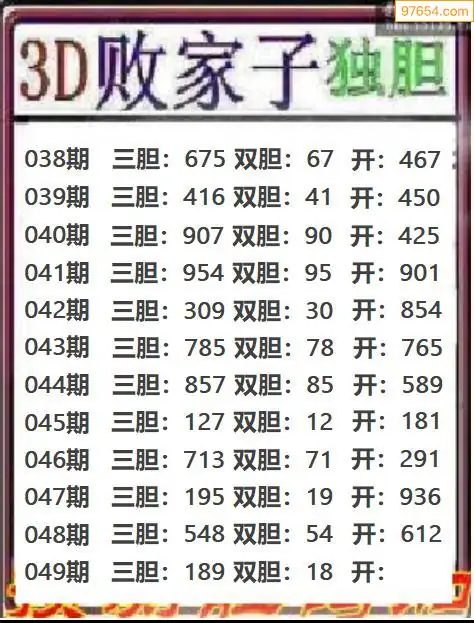 天齐网3d26年049期胆码图 胆:78