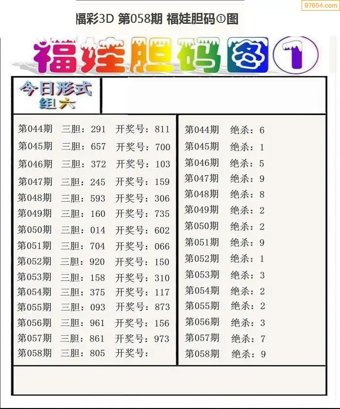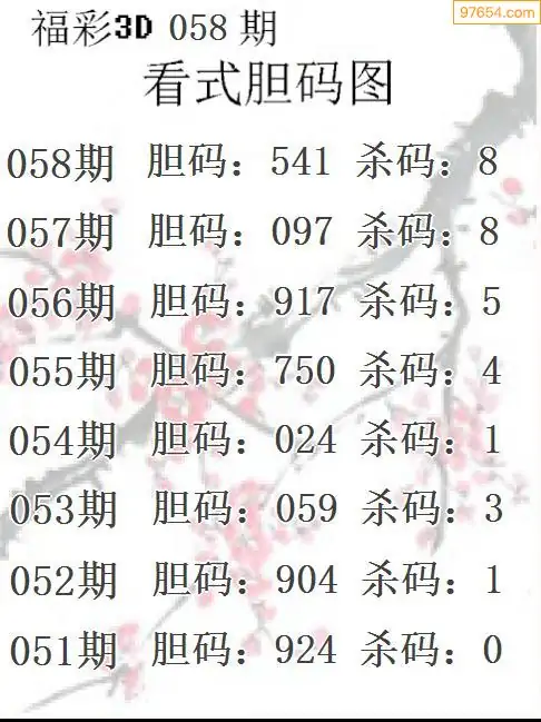 牛彩网058期福彩胆码图汇总 胆:24