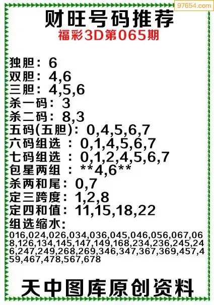 3D原创065期旺财出号推荐