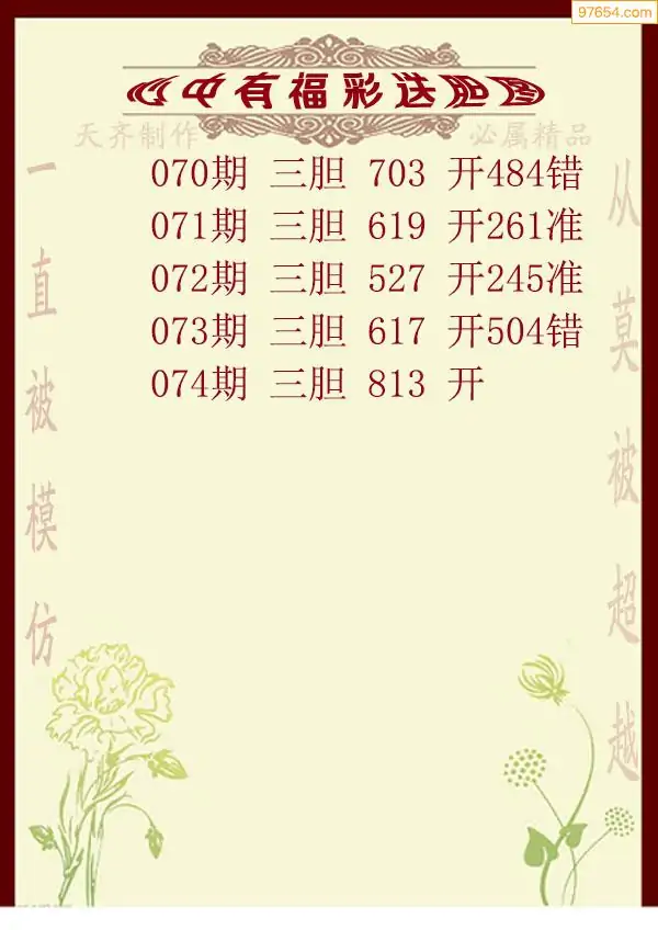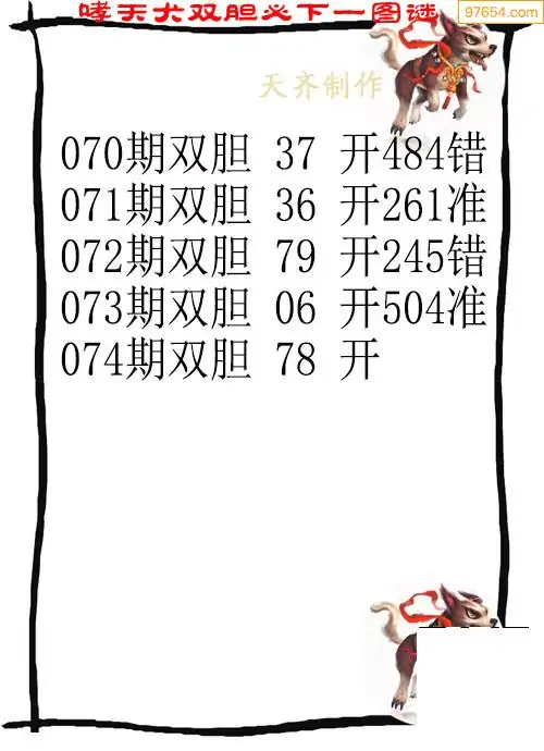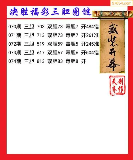 天齐网3d26年074期胆码图 胆:87
