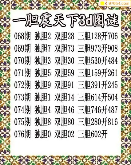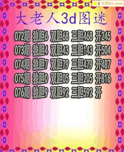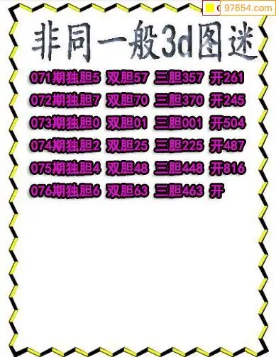 2026076期彩彩网3d原创图迷搜集(天中整理)