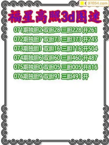 牛彩网076期福彩胆码图汇总 胆:71