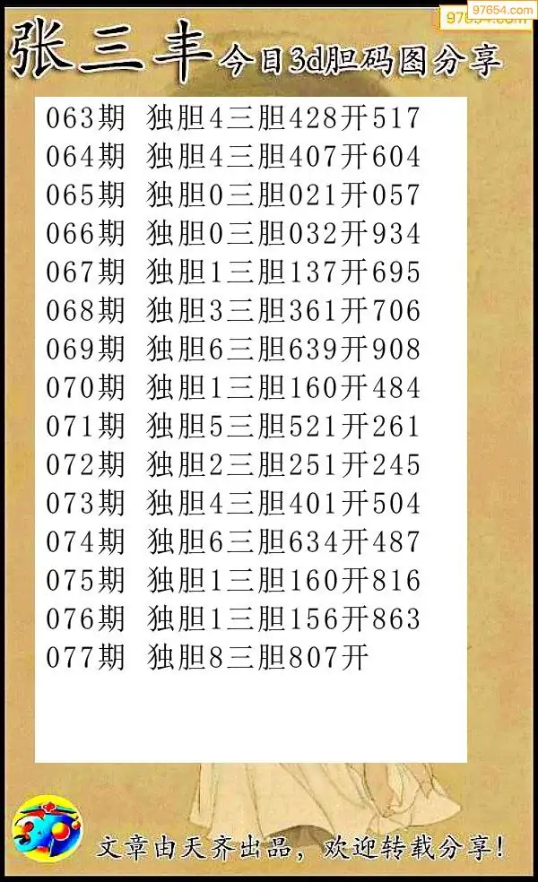 2026077期彩彩网3d原创图迷搜集(天中整理)